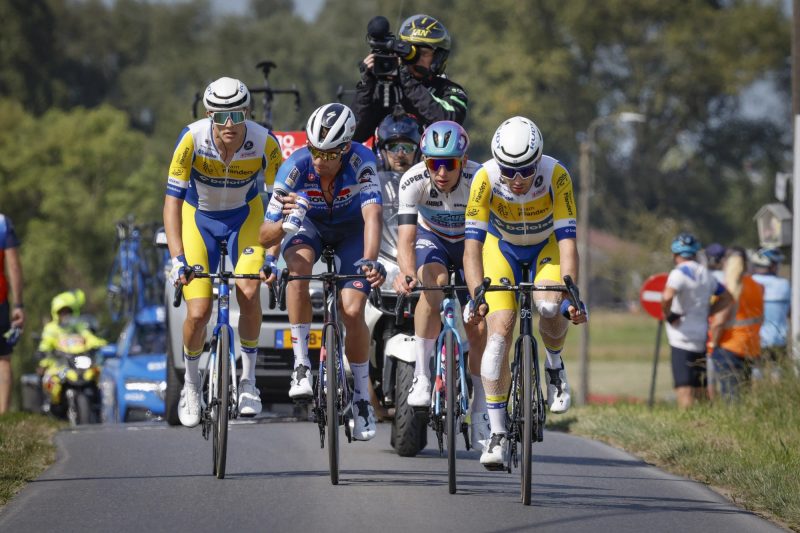 De voorsprong van de vier overgebleven aanvallers was nooit al te groot. De sprintersploegen hadden zich namelijk al snel op kop gezet in het peloton. Het initiatief kwam van Alpecin Deceuninck, Lidl-Trek en Lotto Dstny. Zij knapten het werk op in functie van hun kopmannen Jasper Philipsen, Jonathan Milan en Arnaud De Lie. Soudal Quick-Step werkte niet mee, aangezien ze Vangheluwe in de kop van de koers hadden én sprinter Tim Merlier vrijdagochtend moest opgeven.