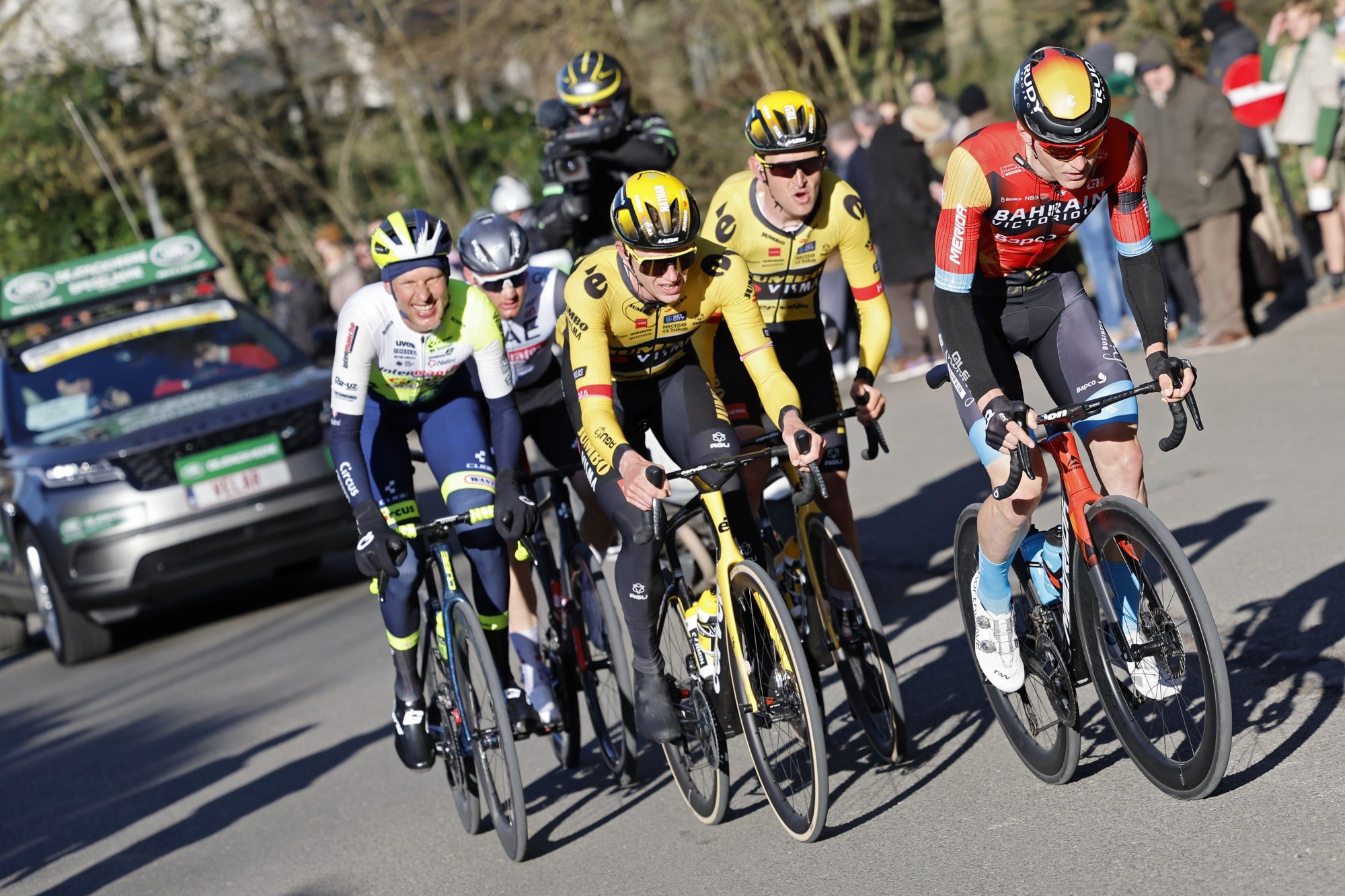 Jumbo-Visma was in de laatste kilometers met een numeriek overwicht in het voordeel. Met nog iets minder dan vijf kilometer te gaan probeerde Van Hooydonck twee keer op kousenvoeten weg te rijden, maar Mohoric, Wellens en Van der Hoorn waren alert. Vervolgens was het aan Benoot om het te proberen, maar er zat niet veel op bij de Belg. Een daaropvolgende demarrage van Mohoric had meer om het lijf, maar Van Hooydonck dichtte de kleine bres en ging er vervolgens zelf vandoor. Mohoric moest zich dubbelvouwen om te volgen, maar kraakte niet.