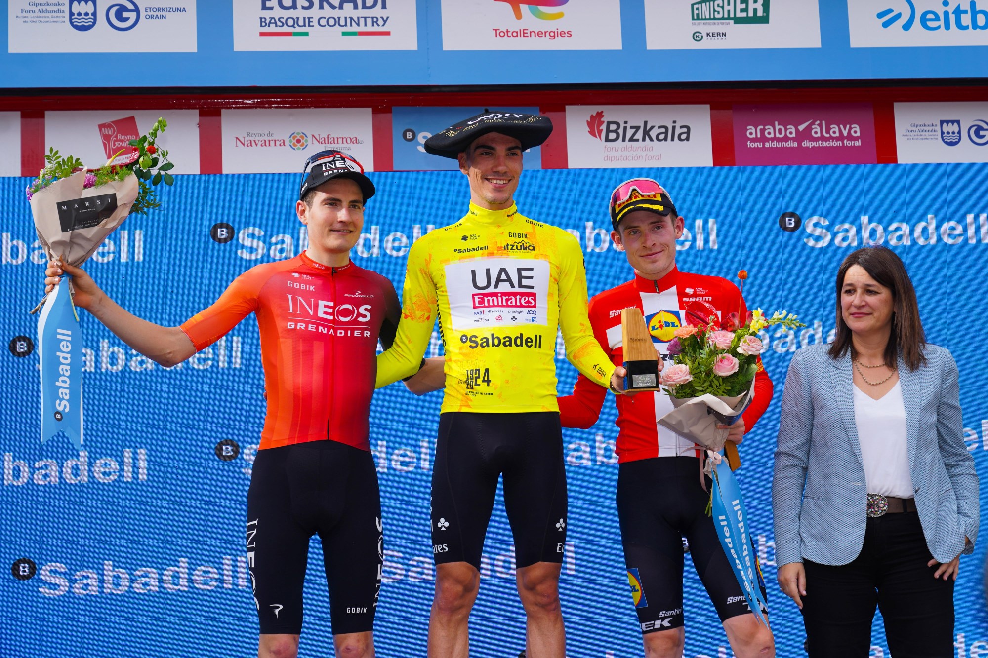 Ayuso en Skjelmose stonden in 2024 samen op het eindpodium van de Ronde van het Baskenland – foto: fotopersburo Cor Vos