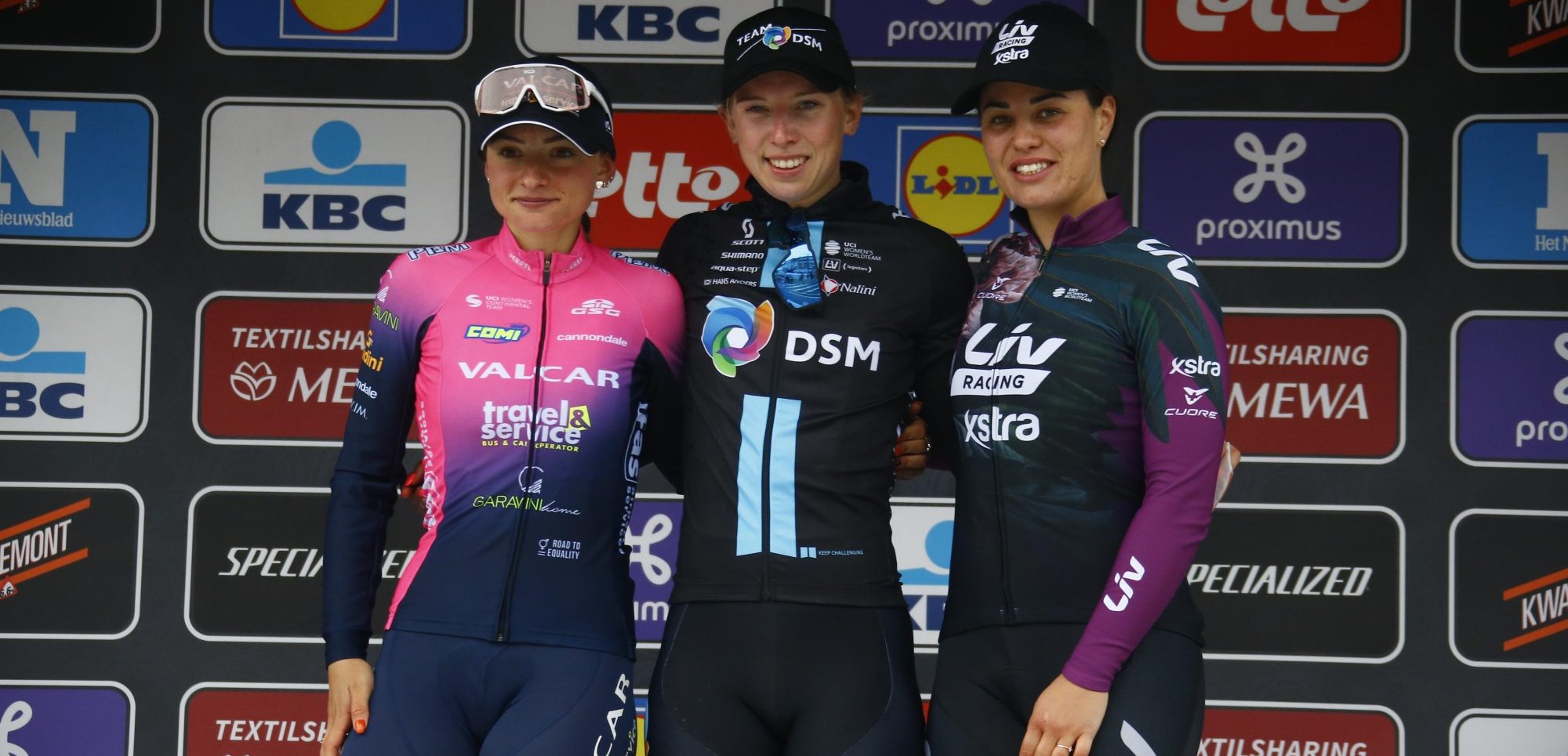 De Nederlandse maakte het zichzelf nochtans niet gemakkelijk, door wel van héél ver haar sprint in te zetten. “Iets meer dan driehonderd meter, denk ik ja. Ik had misschien iets langer in het wiel van Charlotte Kool moeten blijven, want ik vertrok van iets verder dan gepland. Maar gelukkig was het wind in de rug richting finish, anders was het nog lastig geweest.”
