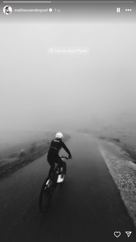 Van der Poel zet in de Franse Alpen de puntjes op de i richting het WK. “Ik heb vooraf een paar keer op de mountainbikefiets gezeten om aan die positie te wennen, dat is voor mij de grootste aanpassing, de techniek komt vanzelf als ik vanaf woensdag elke dag op het parcours kan fietsen”, vertelde de 30-jarige renner na de Renewi Tour. Inmiddels is hij dus terplekke, blijkt uit een foto die hij via een verhaal op Instagram deelde.