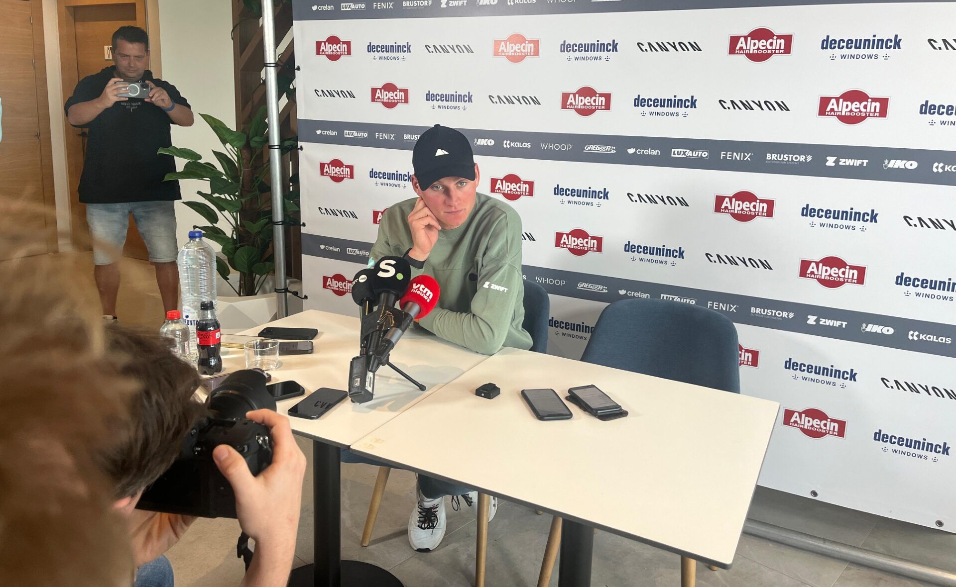 Mathieu van der Poel staat de pers te woord – foto: WielerFlits