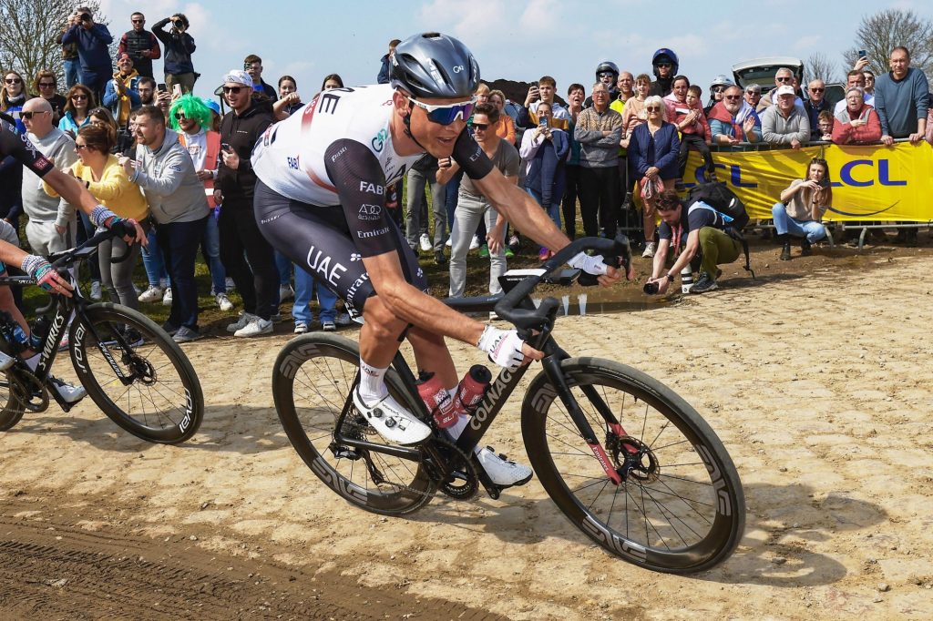 Op de lastige stenen van de Trouée was er paniek in het peloton. Onder meer Dylan van Baarle, Matej Mohoric en Kasper Asgreen gingen onderuit, waardoor de favorietengroep daar uit elkaar sloeg. Kort na het Bos – waar Bax als eerste afdraaide – kon de balans opgemaakt worden: de groep met Van Aert en Van der Poel sloot aan bij de laatste vroege vluchters, maar daar was Laporte weggeslagen door een lekke band. Zijn plek werd ingenomen door een sterke Mads Pedersen, die in zijn eentje de sprong wist te maken.