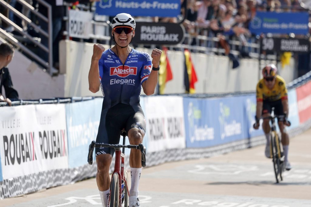 Mathieu van der Poel heeft op grootse wijze Parijs-Roubaix 2023 gewonnen. De kopman van Alpecin-Deceuninck kwam solo over de finish op de wielerbaan van Roubaix, nadat hij op de zware kasseienstrook van Carrefour de l’Arbre wegreed van Wout van Aert. De Belg kreeg op dat cruciale moment een lekke band, moest Van der Poel laten gaan en werd in de sprint om plek twee geklopt door Jasper Philipsen, die het het feest compleet maakte voor Alpecin-Deceuninck.