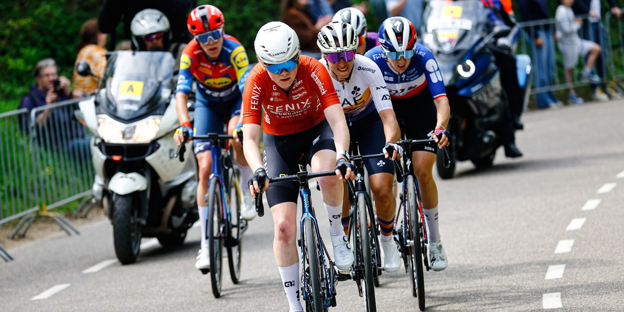Verder was ook de aanwezigheid van Ashleigh Moolman (AG Insurance-Soudal), Puck Pieterse en Yara Kastelijn (Fenix-Deceuninck), Ellen van Dijk en Anna Henderson (Lidl-Trek) en Alison Jackson (EF Education-Oatly) interessant. Marianne Vos probeerde nog wel in haar eentje de sprong te maken, maar de groep van een 25-tal namen was haar te slim af en zorgde zo voor een verrassende wending.
