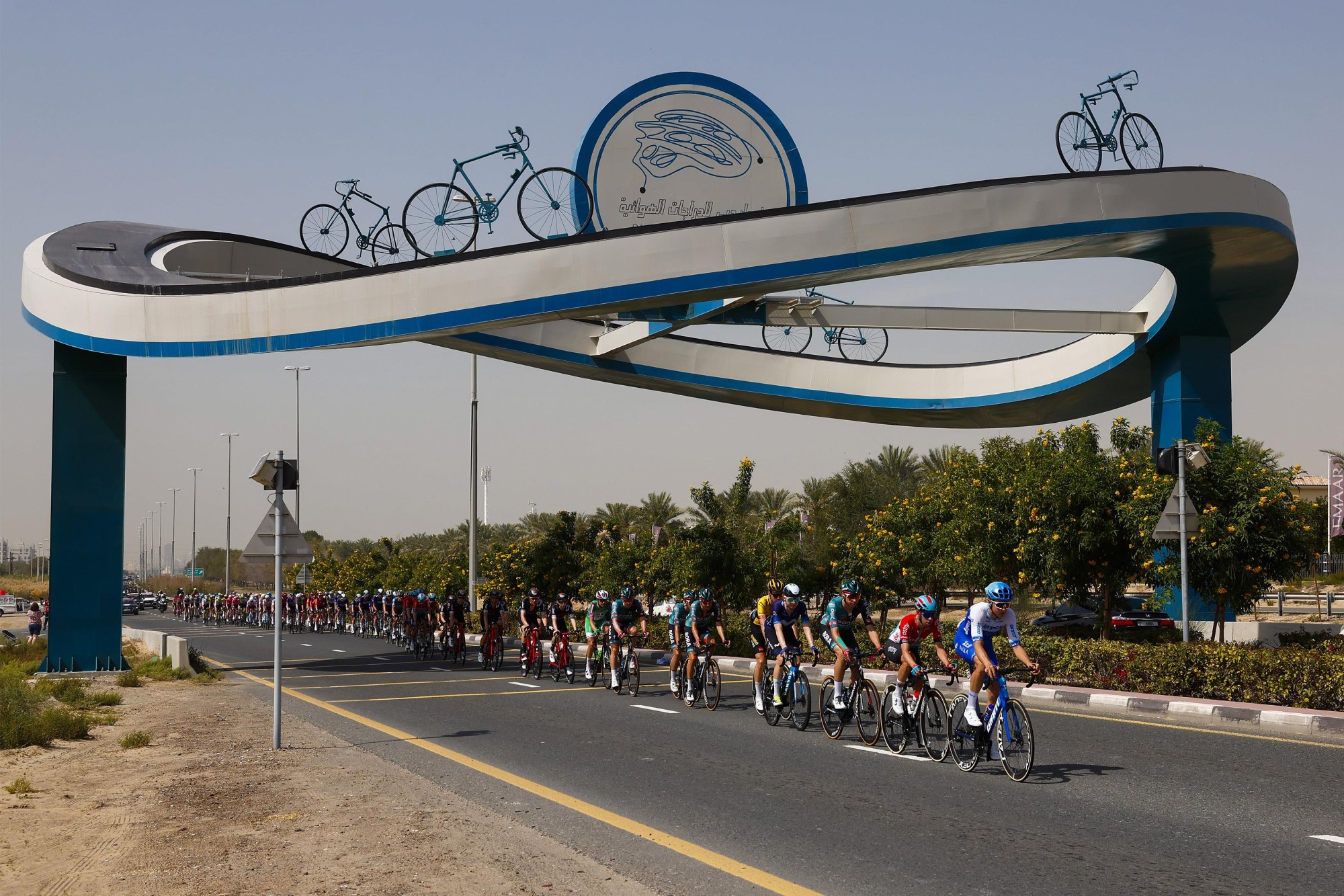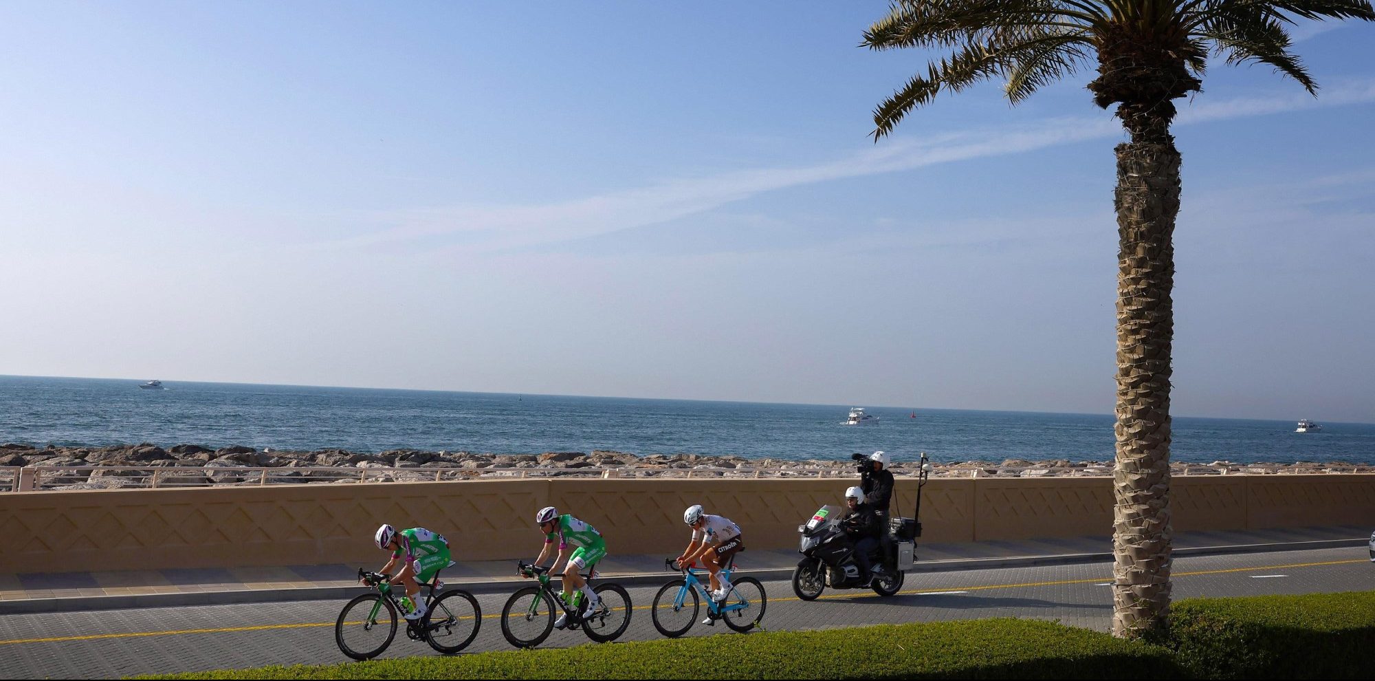 Na de eerste krachtmeting tussen de klimmers op Jebel Jais, was het vandaag weer sprinten geblazen. Voor de vierde etappe zakte de UAE Tour af naar het emiraat Dubai, voor een 174 kilometer lange fietstocht richting de finish in de haven van Dubai, over het opgespoten palmboomvormige eiland Palm Jumeirah. Het leek op het eerste gezicht een ideale etappe voor de snelle mannen, en dus was het uitkijken naar onder meer Tim Merlier, Caleb Ewan, Sam Bennett, Olav Kooij, Mark Cavendish en Dylan Groenewegen.
