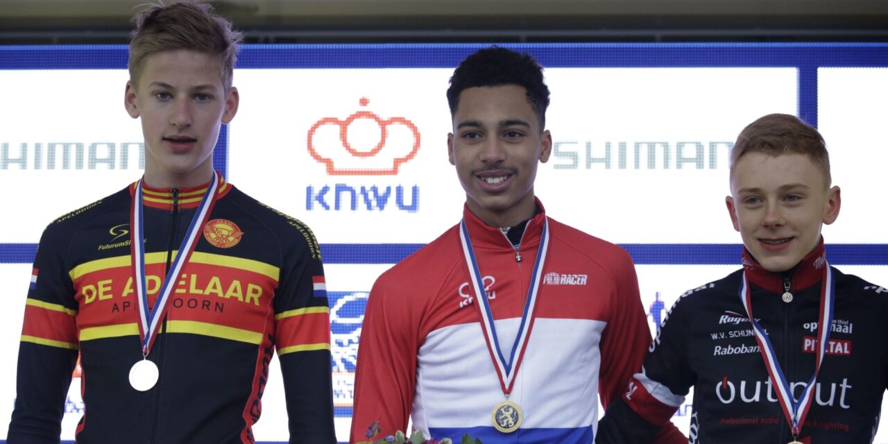 Groenendaal (rechts) pakte brons op het NK veldrijden U19 na winnaar Salvador Alvarado en Hugo Kars – foto: fotopersburo Cor Vos