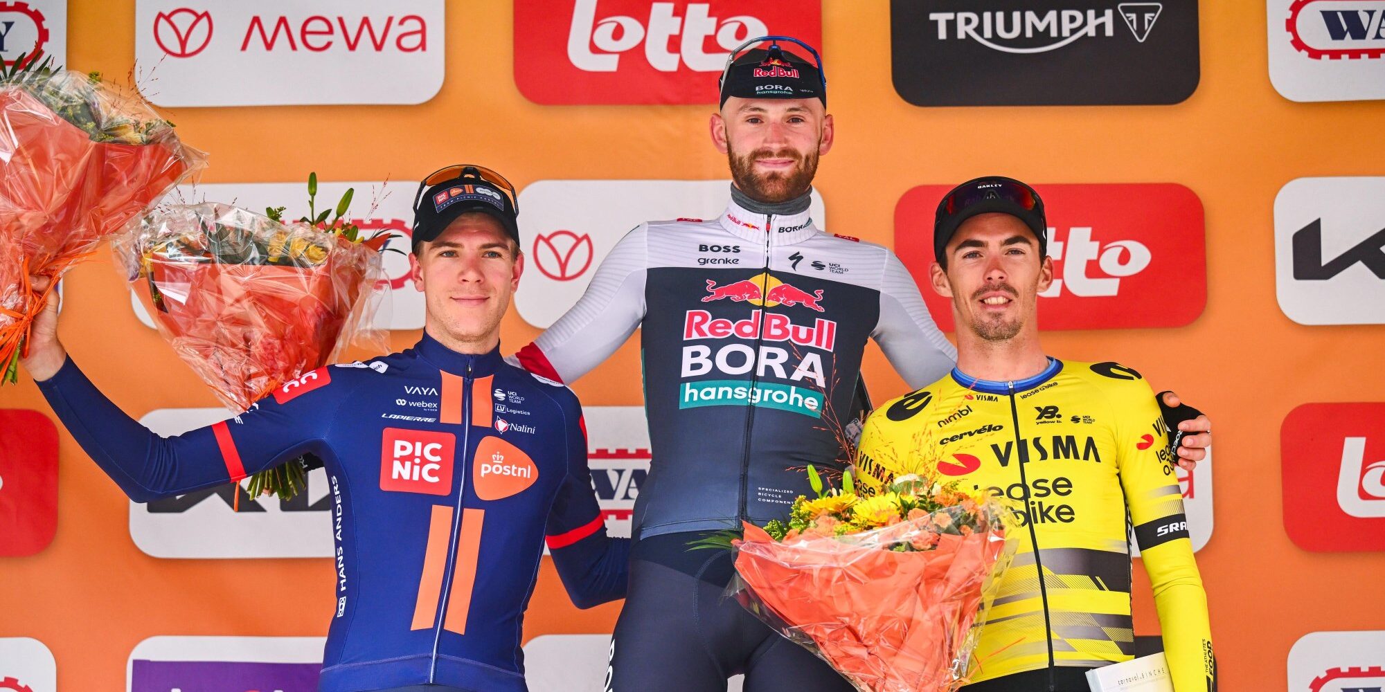 Tweede. Voor sommige renners is het de meest ondankbare ereplaats, maar bij Nils Eekhoff is het glas na Binche-Chimay-Binche toch halfvol. De Nederlander van Picnic PostNL stond voor het eerst in ruim zes maanden weer eens op het podium van een wielerkoers.