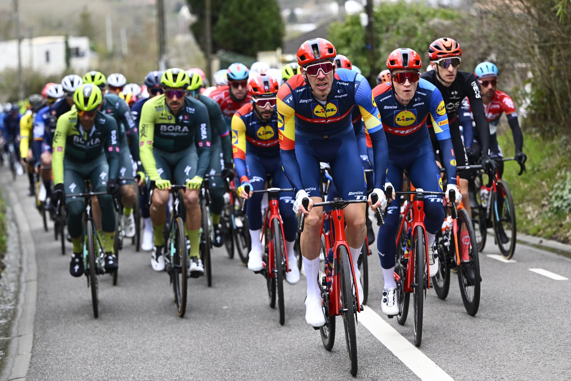 Een drietal ging al vroeg in de rit op pad. Namens EF Education-EasyPost waren dat Jonas Rutsch en Stefan Bissegger, terwijl TotalEnergies rasaanvaller Mathieu Burgeaudeau vooruit stuurde. Zij pakten al snel drie minuten voorsprong, maar door Lidl-Trek, Soudal Quick-Step en Lotto Dstny werd dat verschil teruggebracht. Die ploegen hadden met onder meer Mads Pedersen en Arnaud De Lie kanshebbers op ritwinst.