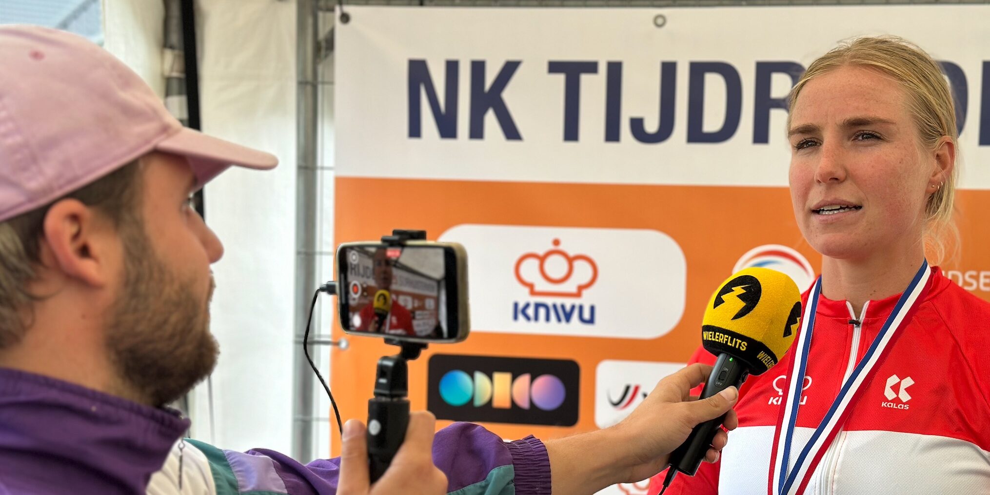Video Mischa Bredewold won dinsdag het NK tijdrijden in Surhuisterveen, maar na afloop was er misschien wel evenveel media-aandacht voor de nummer zes van én de nieuwe Nederlands kampioene tijdrijden elite zonder contract, Ymkje Clevering. De 29-jarige Fries kennen we vooral van de roeibaan: Clevering is samen met Veronique Meester de regerend olympisch kampioene op de twee zonder.