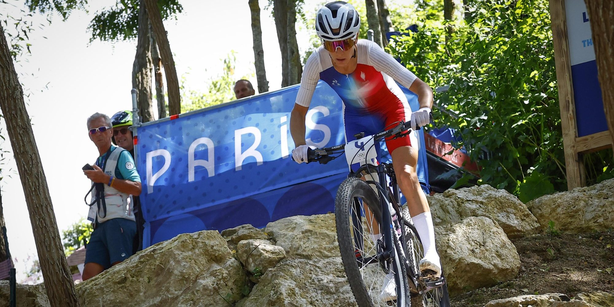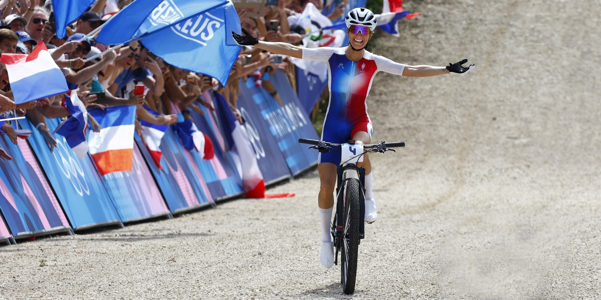 Pauline Ferrand-Prévot heeft het olympisch goud gegrepen in het cross country mountainbiken. In haar eigen land duldde de Française in een van haar laatste grote mountainbike-wedstrijden geen tegenstand. De Nederlandse Puck Pieterse deed lang mee voor het zilver, maar zag een lekke achterband roet in het eten gooien. Zij werd vierde.