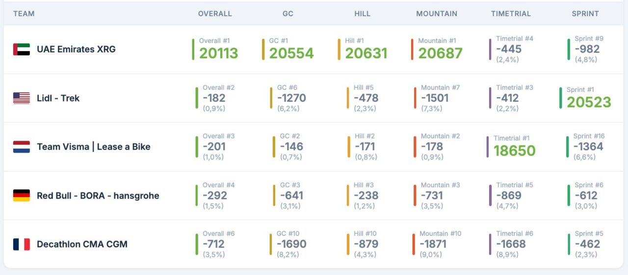 De krachtsverhoudingen van de topteams in 2026 volgens onze Cyclingflash-data