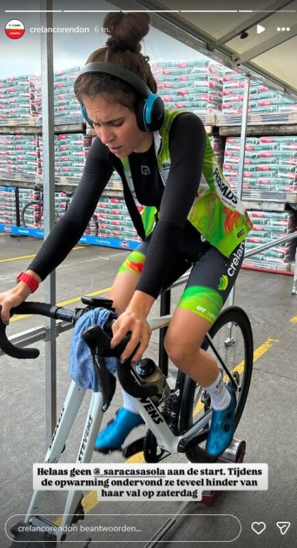 Sara Casasola is niet van start gegaan in de Jaarmarktcross in Niel. De Italiaanse leidster van de Superprestige deed nog wel haar warming-up, maar besloot vervolgens toch niet te gaan crossen. Ze heeft nog te veel last van haar val op het EK in Middelkerke van afgelopen zaterdag, laat haar ploeg Crelan-Corendon weten via sociale media.