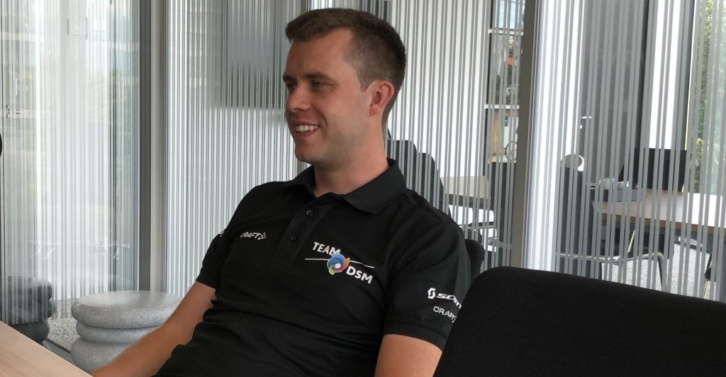 “Jonge rennertjes koersen individueel. Ouders kopen een fiets, zoon- of dochterlief probeert wedstrijden te winnen. Dat is de normale weg. Maar naarmate je ouder wordt, evolueer je naar een teamsport, waarin je moet leren samenwerken. En die samenwerking – cooperation – is ons doel, dat is de sleutel tot succes bij Team DSM. Daarom hebben we overigens ook een Development Team opgericht. Over dat leren samenwerken wordt bij elke sollicitatie uitgebreid gepraat. En daar horen nu eenmaal afspraken bij. Afspraken tussen renners, coaches, experts. Dat is onze structuur, wat we doen en wat we ook gaan blijven doen.”