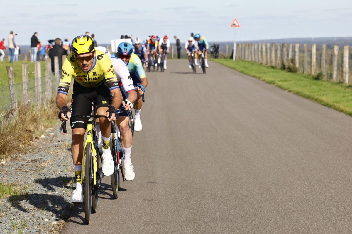 Op dertig kilometer van de finish volgde een nieuwe versnelling, nu van Visma | Lease a Bike. Olav Kooij leidde een aanval van Christophe Laporte in, waarbij de tegenaanvallers ingerekend werden. Slechts twee renners konden de Fransman daarna volgen: Lukas Kubis en de opgeraapte Ballerini. De Italiaan kon de twee frisse krachten even volgen, maar ging bij een volgende passage van de VAM toch overboord. In het ‘peloton’ – een groepje van nog slechts zo’n tien renners, onder wie Kooij, Teunissen en Danny van Poppel – reed Daan Hoole op kop voor ploegmaat Söderqvist. Maar op den duur zouden zij meer terrein verliezen.