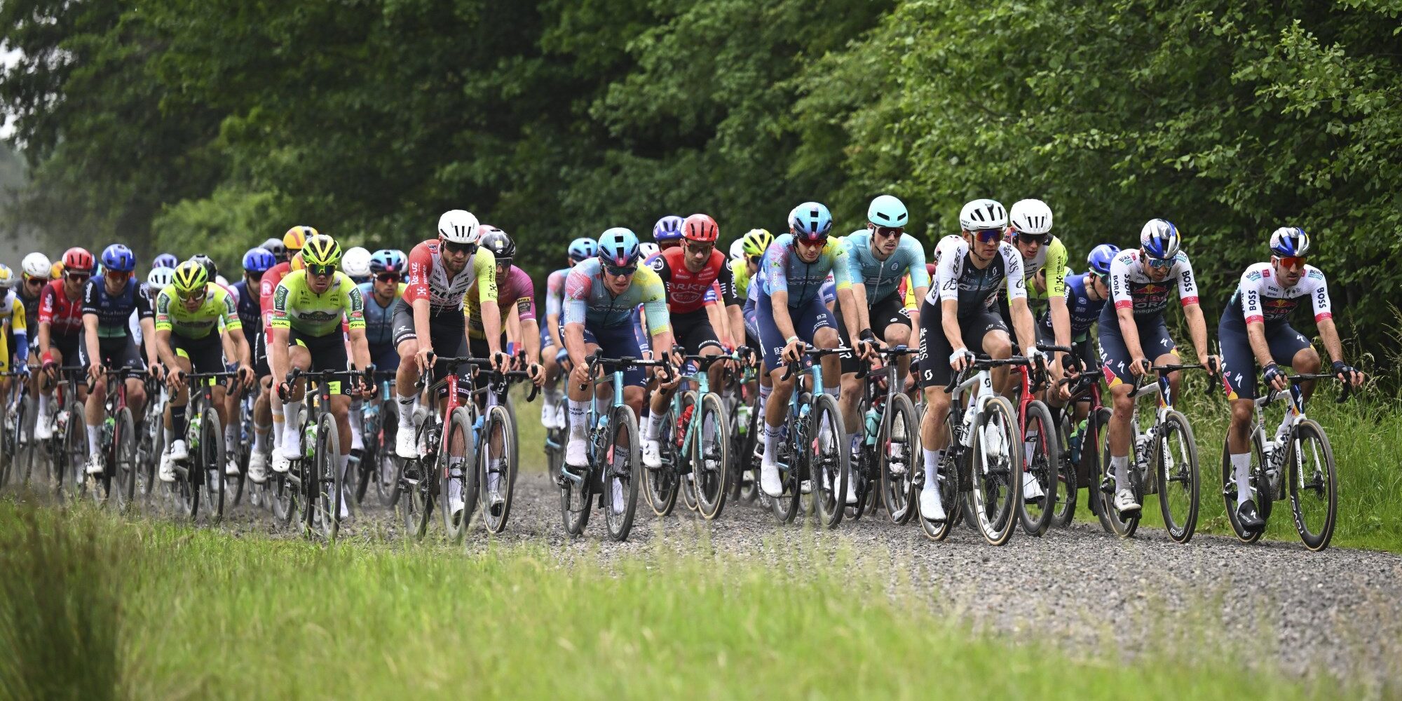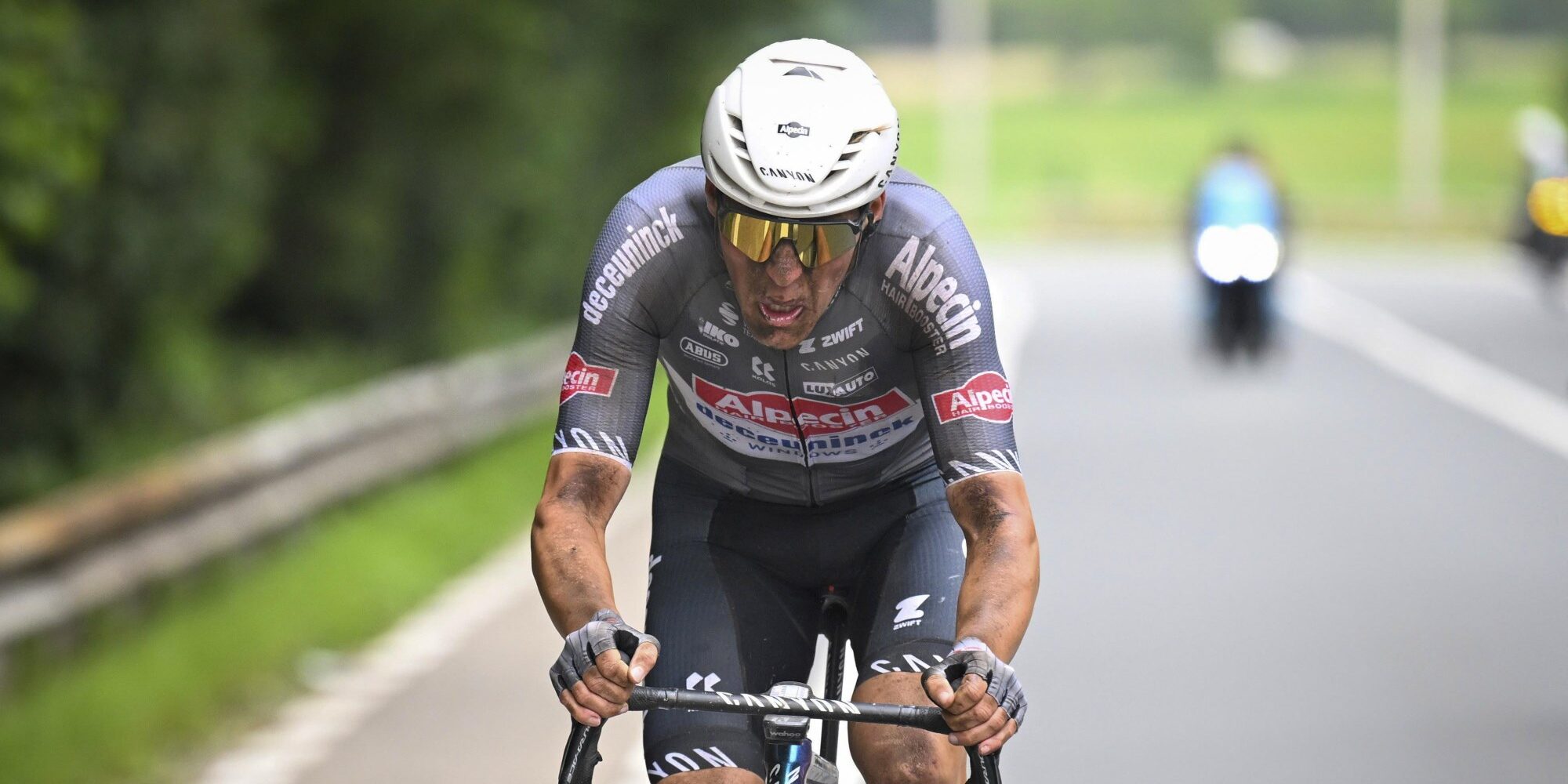 In het peloton was het na de herstart alle hens aan dek, want er werd slag om slinger gedemarreerd. Ook de grote namen lieten zich niet onbetuigd. Zo was Tibor Del Grosso zeer bedrijvig, maar moest zijn aanvalslust ook bekopen met een valpartij. De Nederlander dook op een van de gravelstroken in de gracht, maar de renner van Alpecin-Deceuninck zat ook razendsnel weer op zijn fiets.
