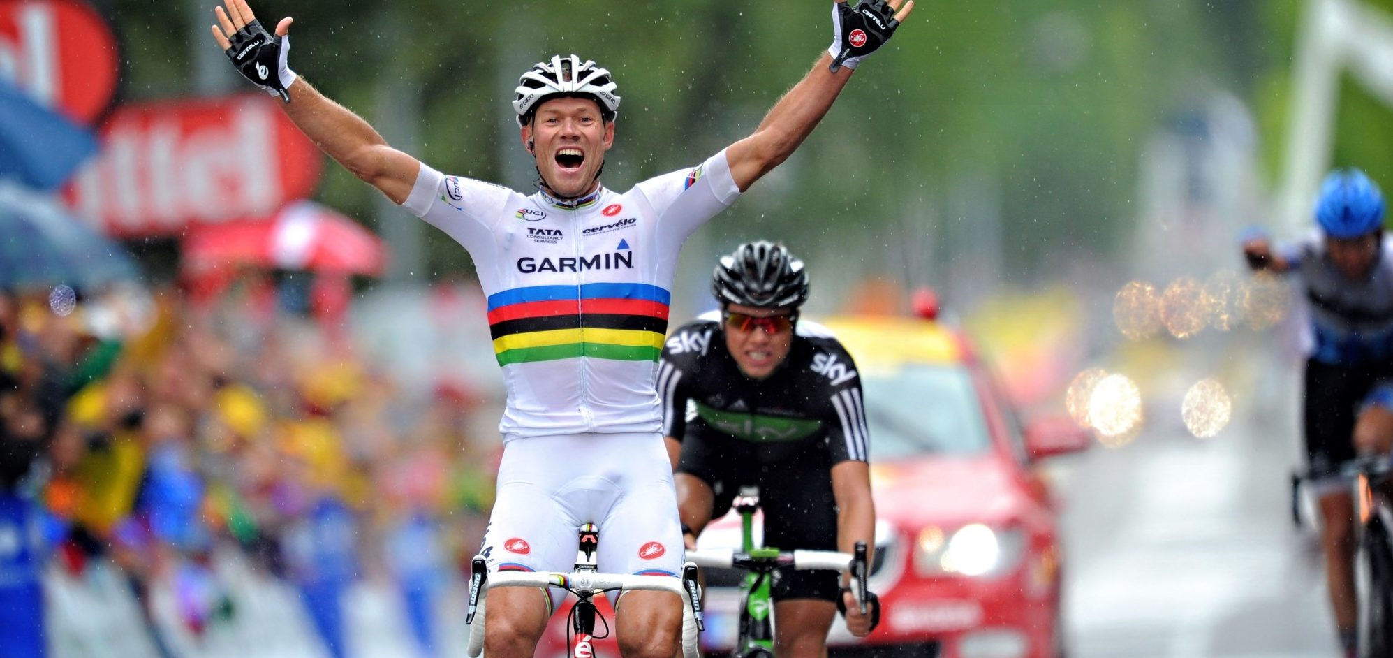 Wereldkampioen Hushovd verslaat zijn landgenoot Boasson Hagen in 2011 – foto: Cor Vos