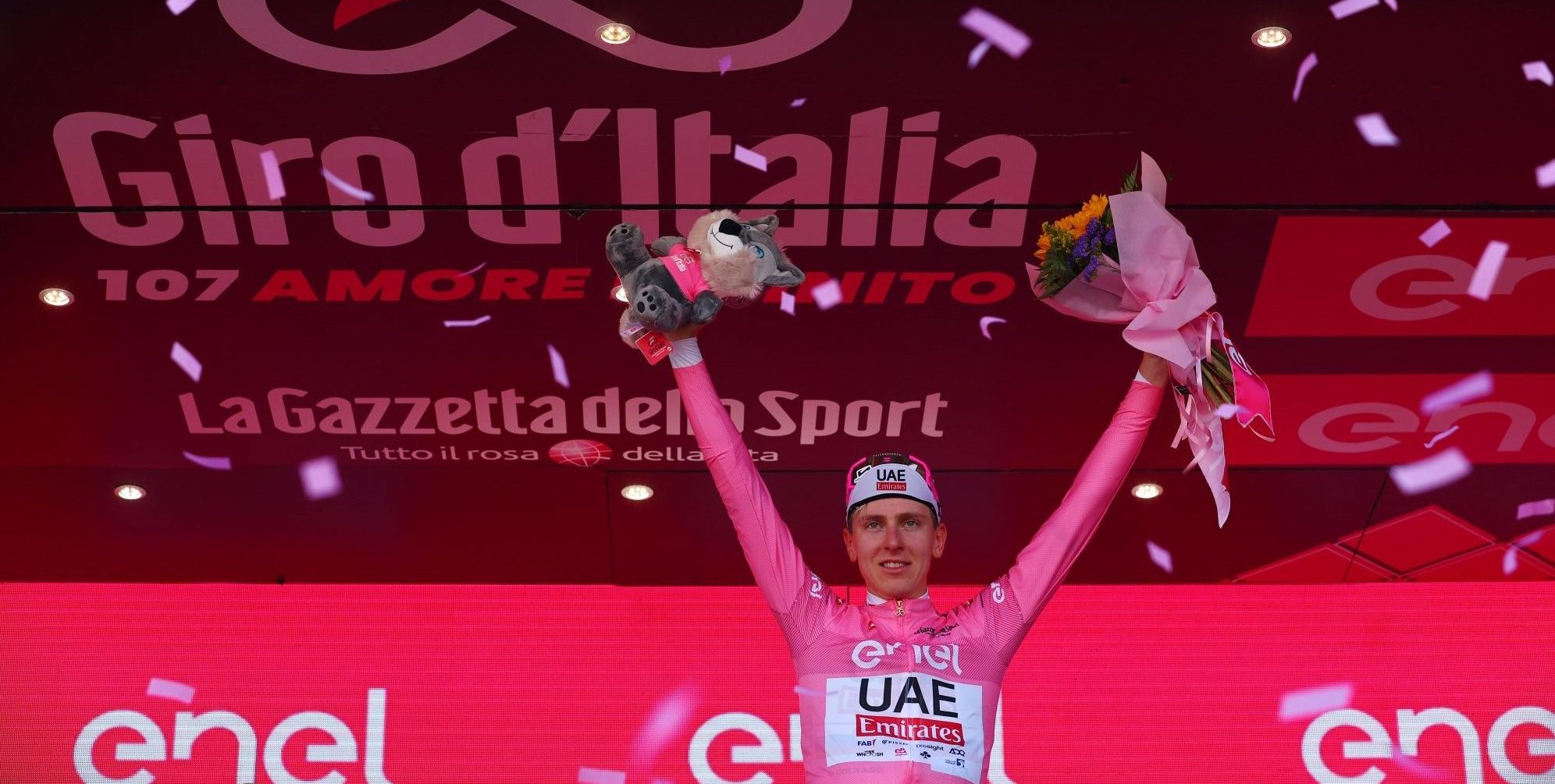 Tadej Pogacar won dit jaar al de roze trui, nu heeft hij zijn zinnen gezet op geel – foto: Cor Vos