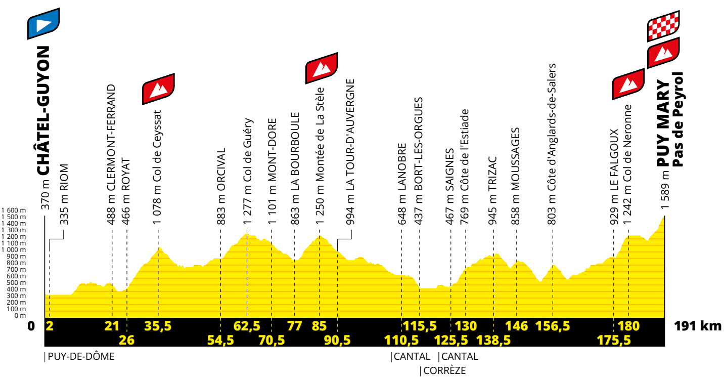 Vr. 10 juli – Etappe 13: Châtel-Guyon – Puy Mary (191 km)