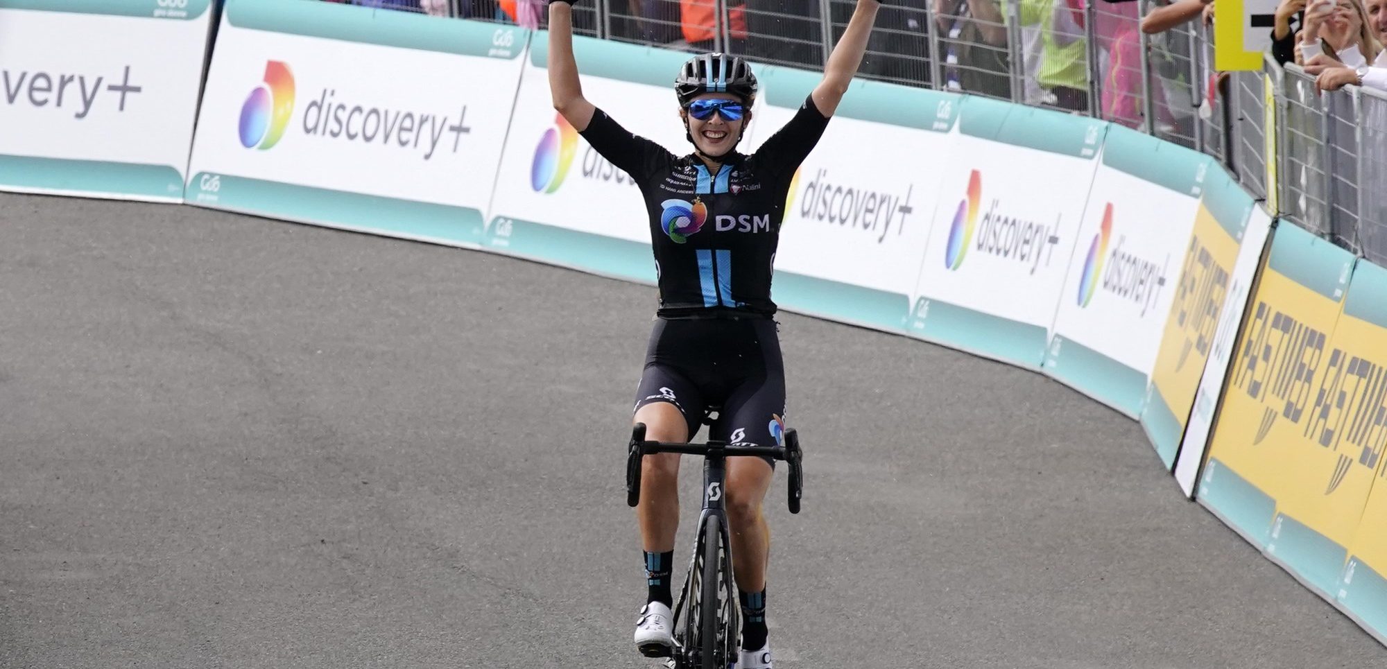 Er leek wel een vloek te rusten op de tweede plaats in de Giro Donne. Eerst Elisa Longo Borghini, toen Antonia Niedermaier, toen Veronica Ewers… Gelukkig voor haar wist Juliette Labous uiteindelijk haar tweede plek wel vast te houden. De dsm-firmenich-renster begon haar fietsleven op de BMX, maar op een gegeven moment stapt ze over naar een iets groter frame. En dat gaat de 24-jarige uit de Franche-Comté ook prima af.