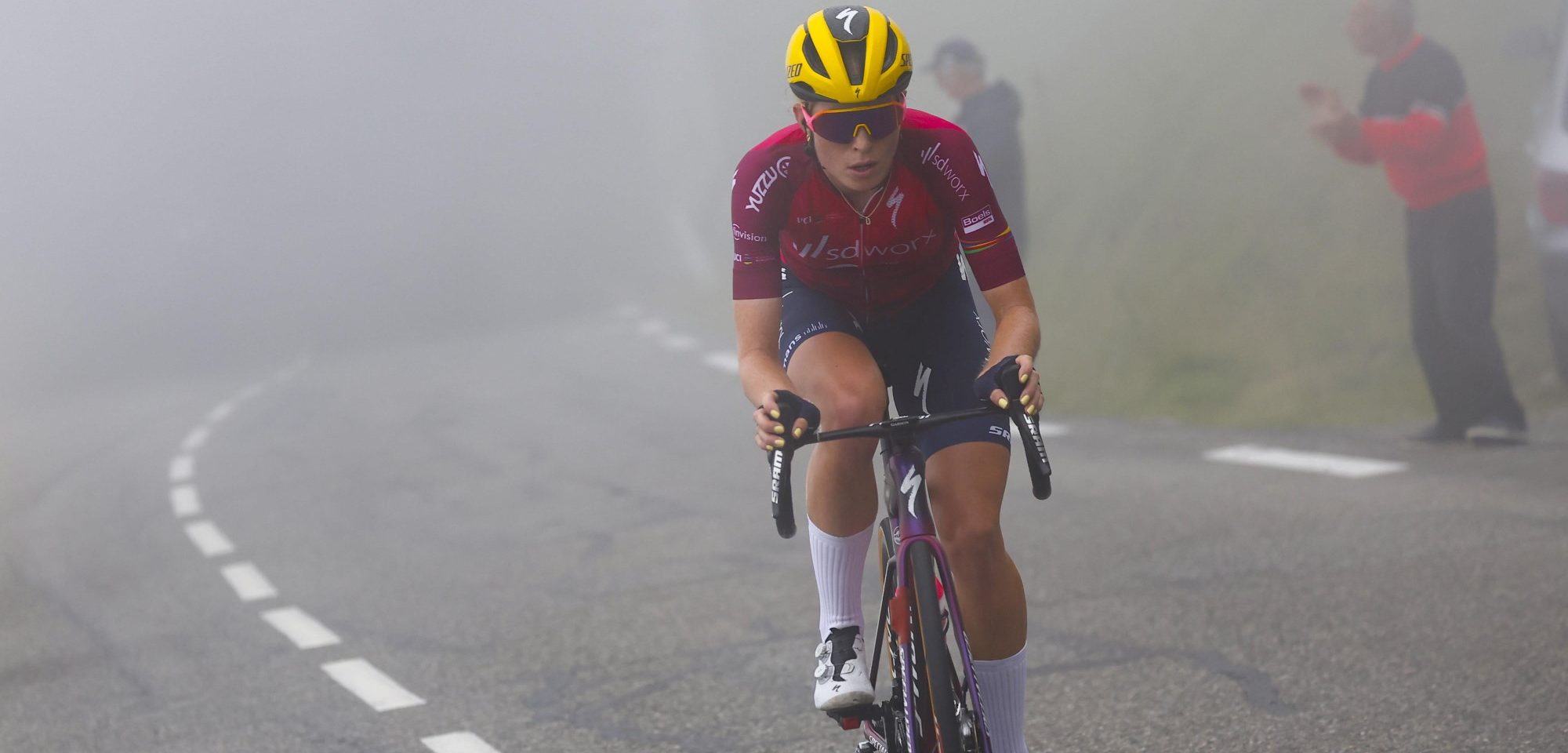 Demi Vollering pakte in 2023 het geel op de voorlaatste dag op de Col du Tourmalet – foto: Cor Vos