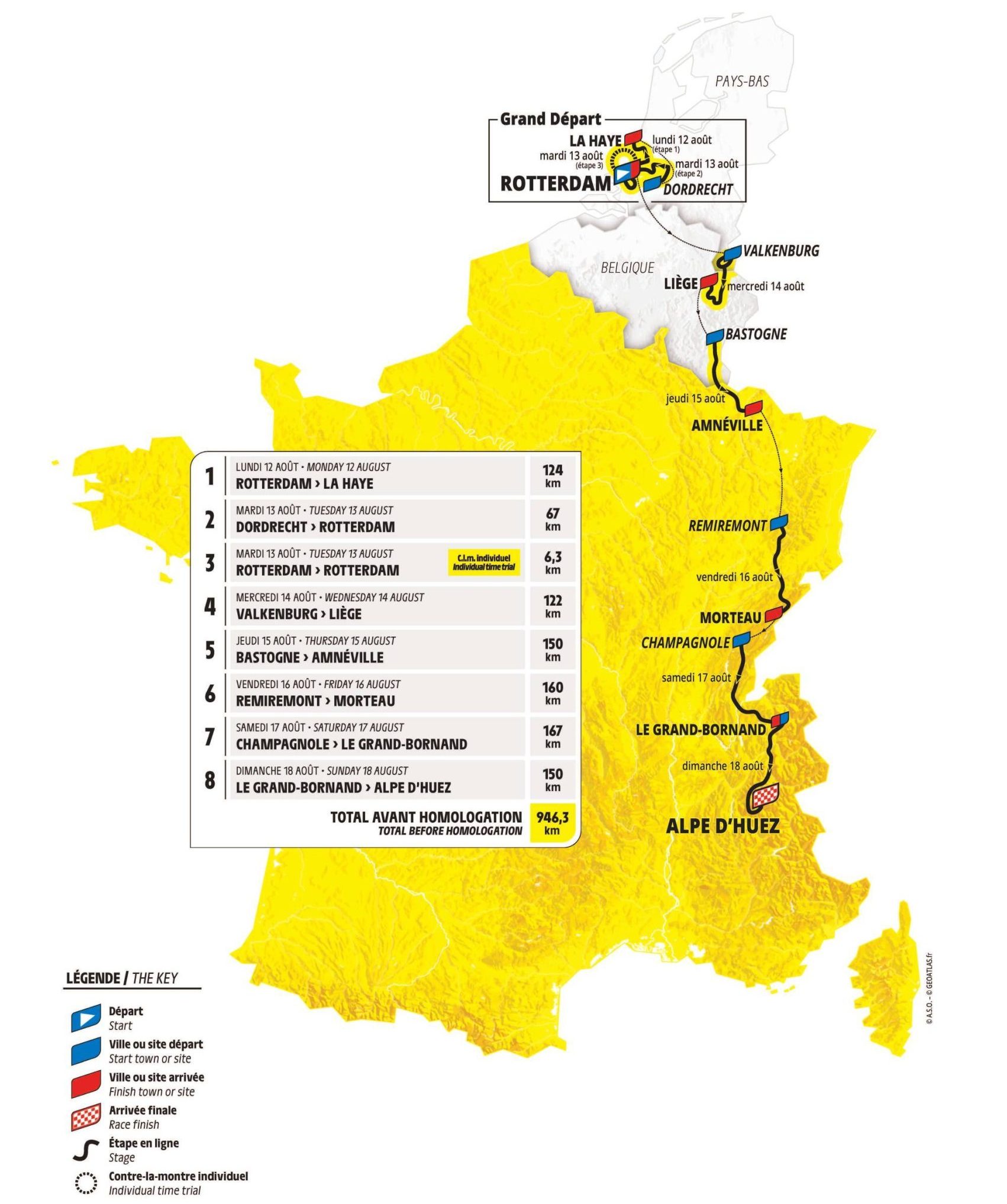 Niet alleen het begin van de Tour de France Femmes kleurt Nederlands, ook het einde doet dat. De laatste rit finisht namelijk boven op de Nederlandse berg Alpe d’ Huez. Christian Prudhomme, de directeur van organisator ASO, vatte het vlot samen bij WielerFlits. “Marion Rousse (de koersdirecteur bij de vrouwen, red.) en ik wilden starten in een land waar de mensen fan van fietsen zijn. Dan kom je uit in jullie land. We wilden mensen opzoeken met passie voor wielrennen. Niet voor niets gaan we van Nederland naar de Nederlandse berg, want we eindigen op Alpe d’Huez.”