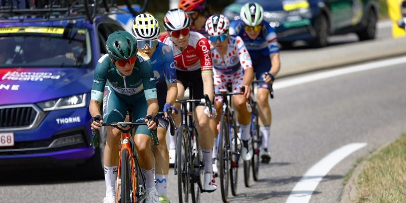 Voorin deden Ghekiere (bergklassement) en Vos (puntenklassement) goede zaken door bij de klimmetjes en de tussensprint steeds de maximale punten voor zichzelf op te strijken. De Nederlandse legende van Visma | Lease a Bike is na de opgave van Kool nu al mathematisch zeker van de groene trui. Meer nog: haar achterstand in het klassement was nog geen twee minuten en met een bonus van meer dan vijf minuten was Vos lange tijd de virtuele drager van de gele leiderstrui. Toch was het peloton daar niet zinnes op. Langzaam maar zeker werd de voorsprong teruggebracht.