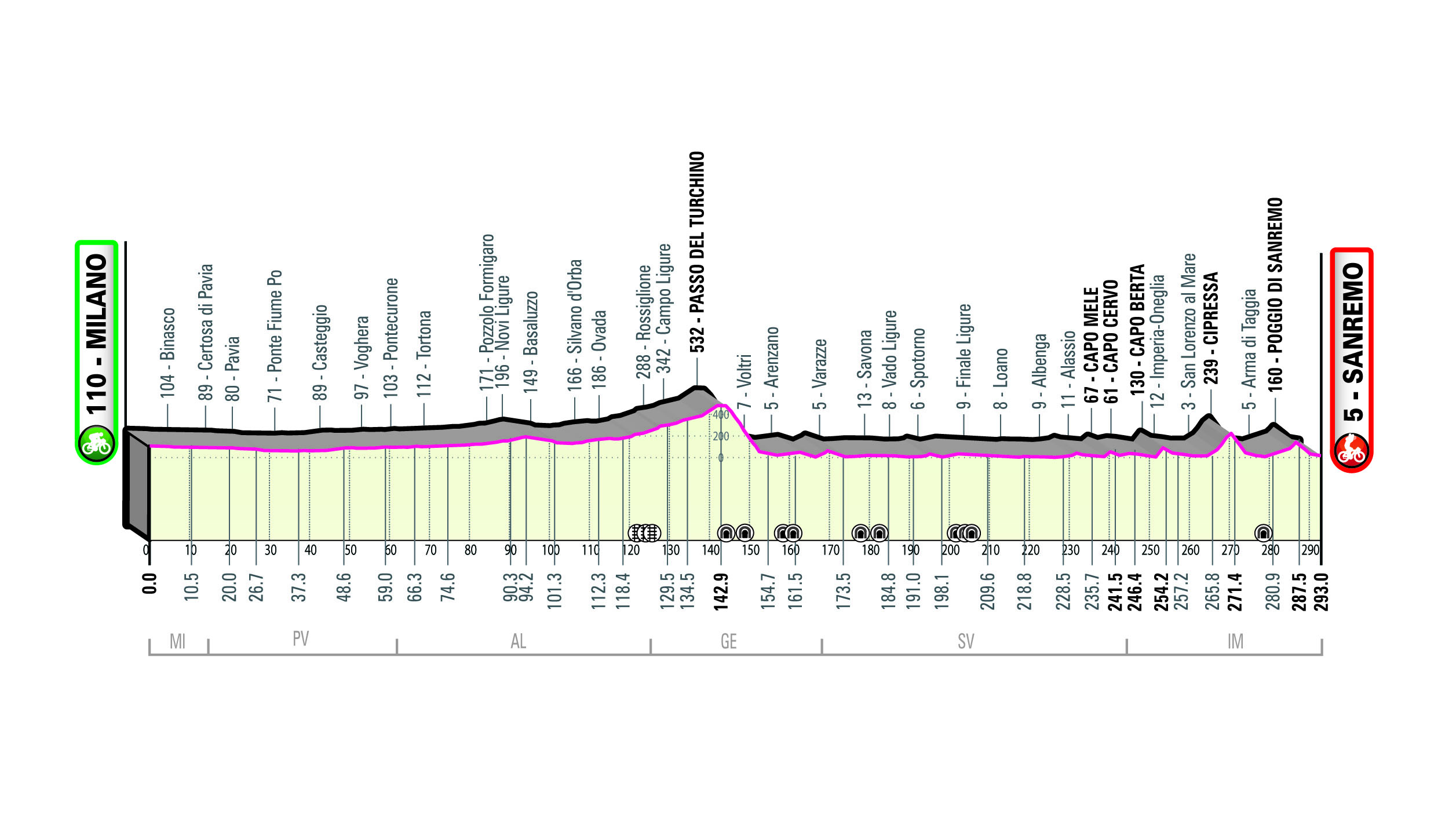 De Passo del Turchino maakte in 2019 voor het laatst deel uit van de route van Milaan-San Remo. Een jaar later werd de beklimming geschrapt. De organisatie moest terug naar de tekentafel nadat meerdere gemeenten niet bereid waren om mee te werken aan een passage van La Classicissima, die destijds niet in het voorjaar maar ’s zomers werd gehouden. Verwachte verkeersproblemen en een opleving van het coronavirus werden aangevoerd als redenen.