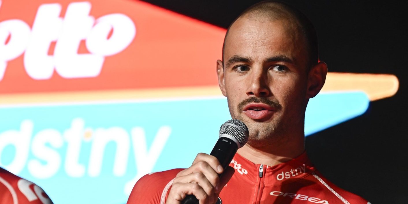 Campenaerts doet zijn zegje op de mediadag van Lotto Dstny – foto: Cor Vos