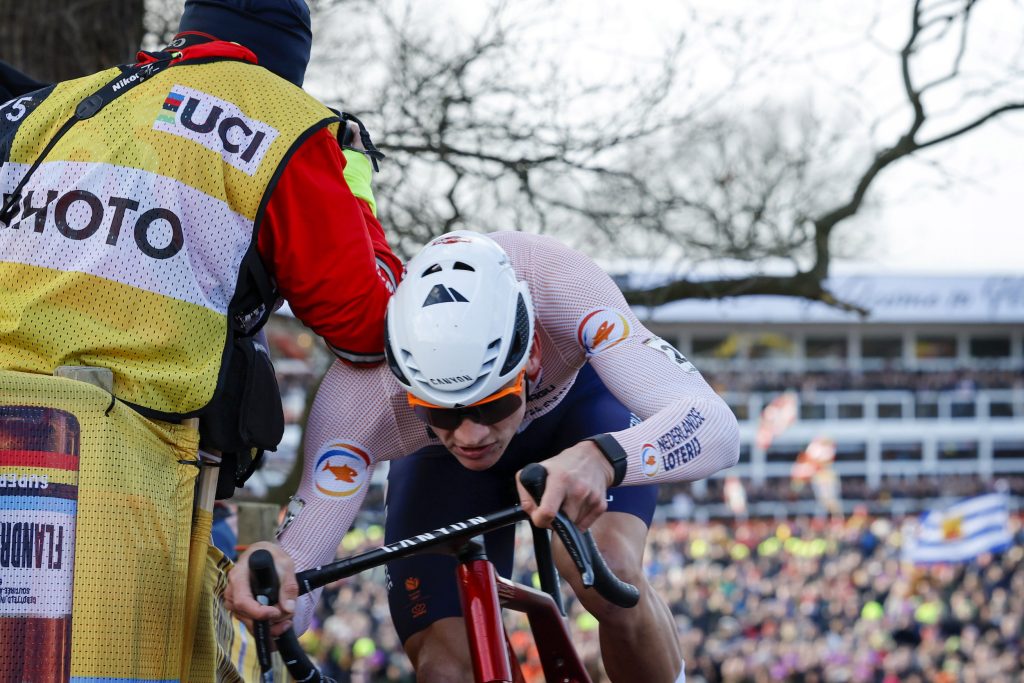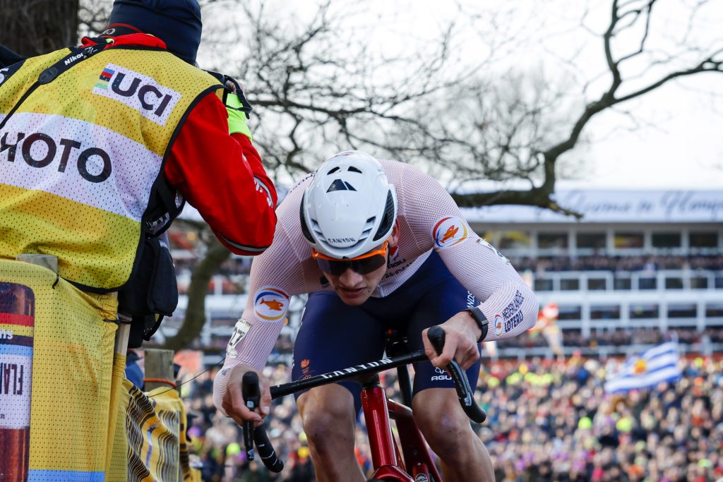 Ondanks de klap – die plaatsvond net na de tweede brug, in de bocht voor de lange klim langs het bos – reed Van der Poel uiteindelijk naar zijn vijfde wereldtitel veldrijden. In een sprint met twee versloeg hij zijn eeuwige rivaal Wout van Aert.