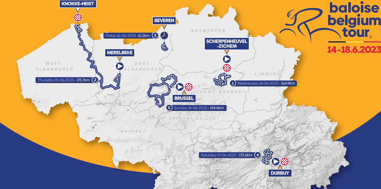 De 91e Baloise Belgium Tour begint dit jaar in Scherpenheuvel, voor een lastige heuvelrit. Via Merelbeke trekken we vervolgens naar de kust, voor de traditionele sprintrit naar Knokke-Heist. In de traditionele tijdrit op dag drie mag Beveren als gastheer fungeren, vooraleer we verhuizen naar de Ardennen voor de koninginnenrit met start en aankomst in Durbuy. Op de slotdag, met start en aankomst aan het Atomium in Brussel, mogen de snelle mannen zich nog eens uitleven.