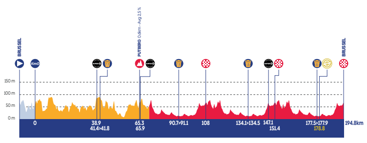 Pittig voor een beginfase zou je denken, maar na deze lokale ronde van een dikke veertig kilometer, volgt prompt daarna weer dezelfde, lastige lus. In de finale ronde van 38 kilometer is de organisatie iets milder, want alleen de Kerkstraat en Wijndries keren hier terug – die laatste op zo’n vijftien kilometer van de streep. Maar vergis u niet, ook naast de gecatalogeerde klimmetjes loopt het de hele dag licht op en af. De etappe zal in de kleren kruipen, maar krijgen we ook al grote verschillen?