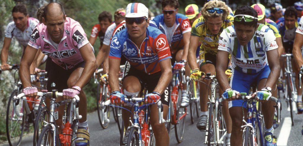 Miguel Ángel Martinez Torres (links) in de Tour de France 1994 met naast Raúl Alcalá en Julio César Cadena – foto: Cor Vos