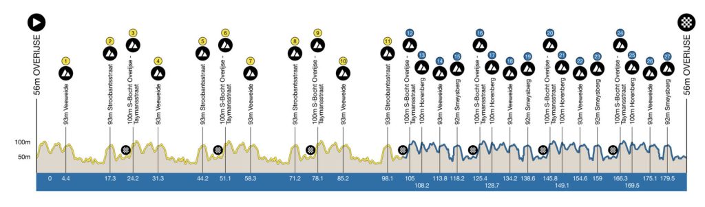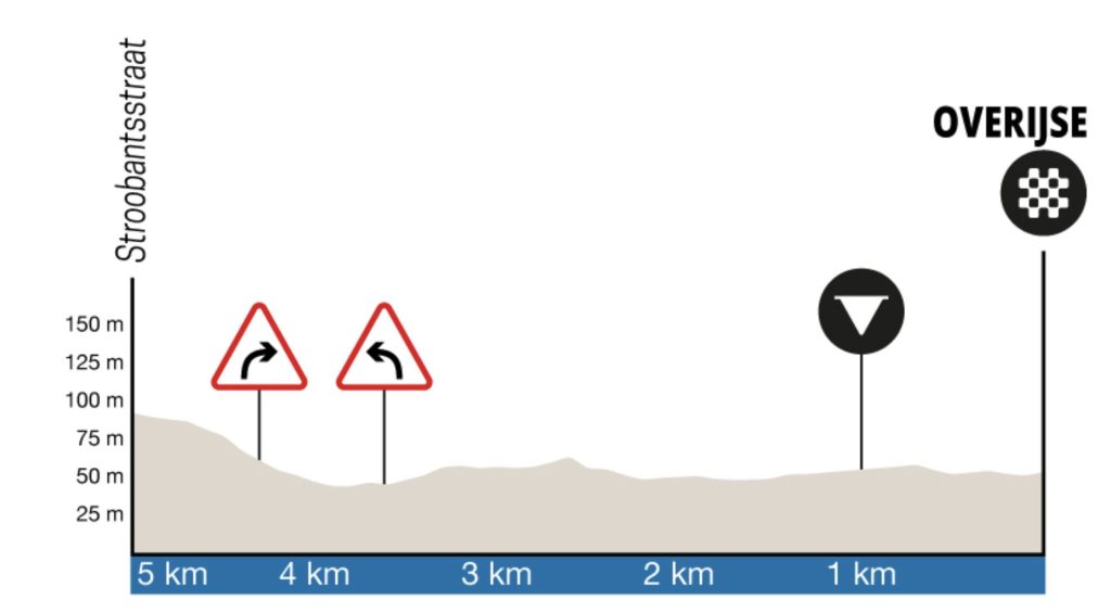 De top van de Smeysberg ligt op een zestal kilometer van de streep. Het is dus zeker mogelijk om op de Smeysberg aan te vallen en solo richting de streep rijden. Makkelijk zal dat echter niet zijn, want in de laatste vier kilometer liggen nog een aantal stroken die lelijk omhoog lopen. Ideaal om helemaal stil te vallen dus. Ook de laatste rechte lijn is niet vlak.