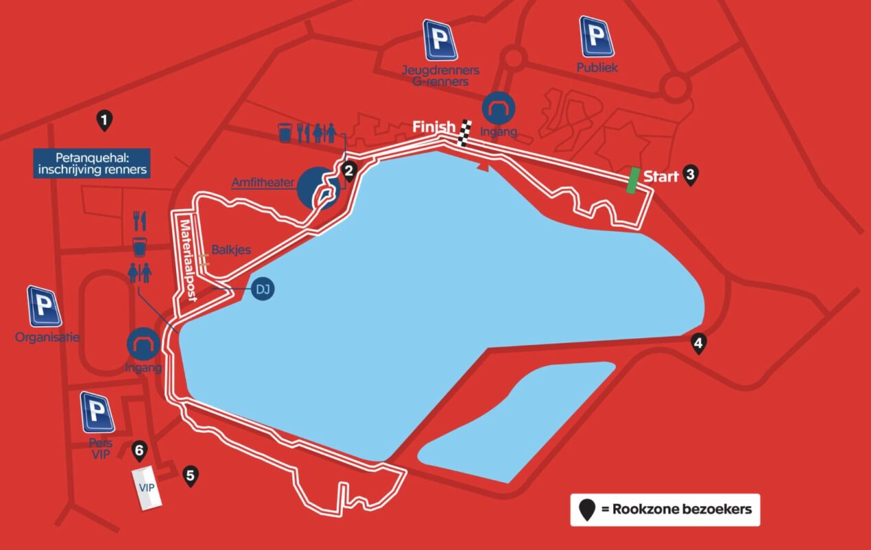 De zandstroken bevinden zich wel pas in de tweede helft van de omloop, nadat onderaan de vijver een bocht van 180 graden wordt gemaakt. In deel één zitten een paar technische hindernissen (enkele hellinkjes in het zogenaamde amfitheater), maar in die eerste helft kan ook aardig tempo gemaakt worden. Ondanks de zandpassages in de terugkeer richting finish, blijft het vooral een lichtlopende omloop.