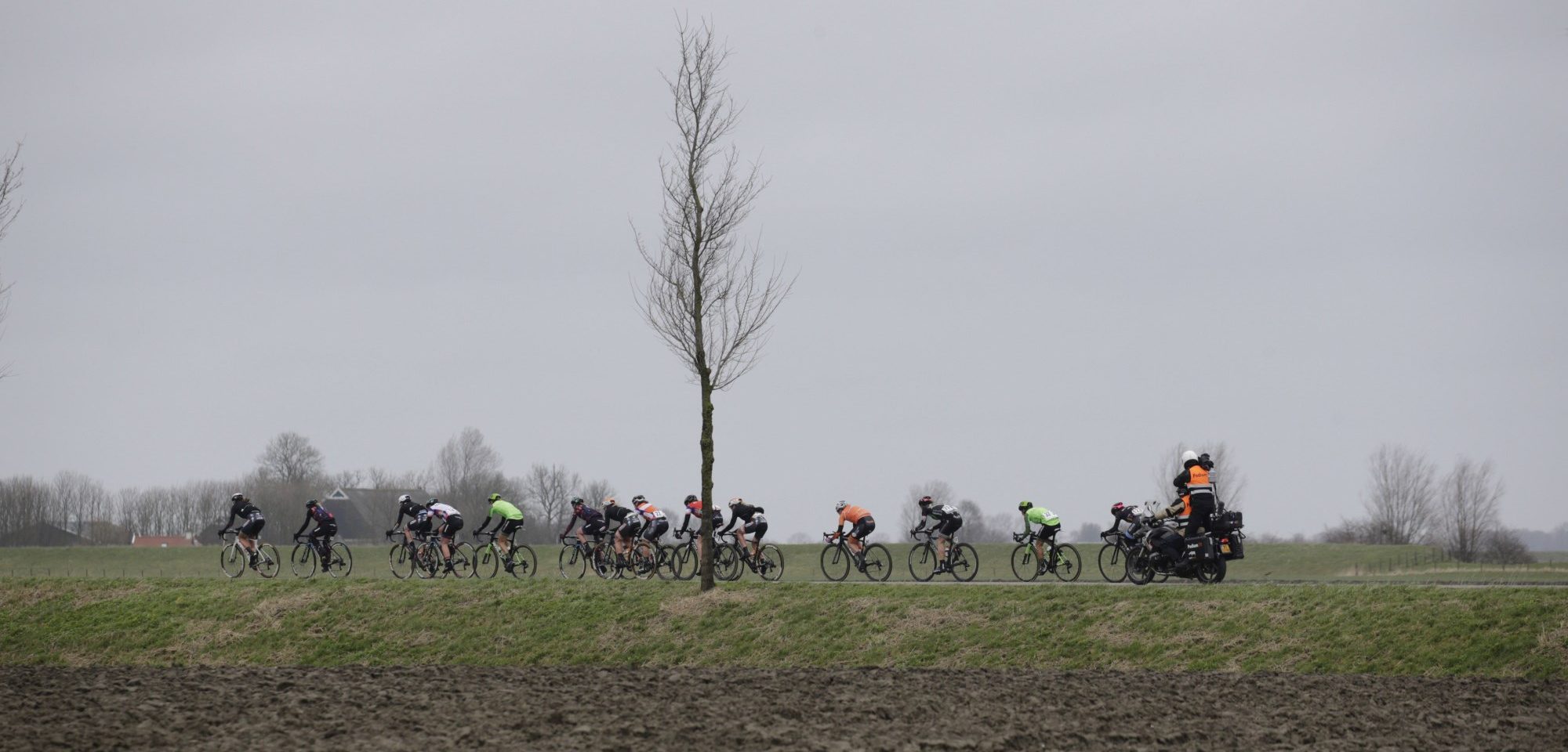 Dan is het tijd voor het vlakke deel van het parcours. Waar je je op de steile flanken soms even stiekem op de Koppenberg of de Redoute waant, hier weet je weer dat je op Drentse grond rijdt. Het vaak smalle biljartlaken voert de rensters eerst kort richting het zuiden, maar al snel wordt koers gezet richting Drijber. In plaats van door het dorpje heen te rijden, wordt er direct weer koers gezet richting de klim. De vlakke stukken zijn dus nog wat korter in vergelijking met het Nederlands wegkampioenschap.