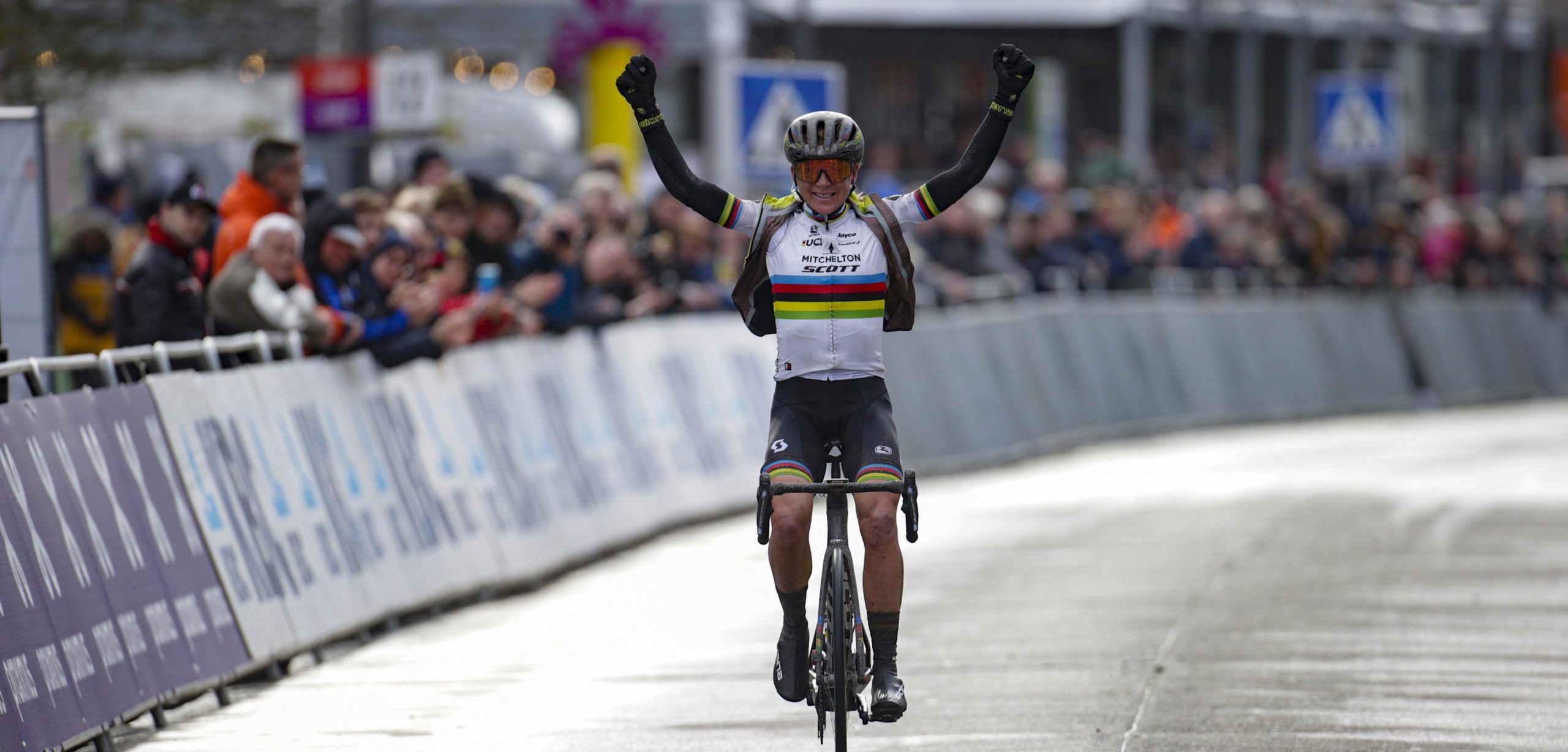 Een stevige achtervolging volgde, maar toen de slag viel op de Molenberg zat ze weer vooraan. De beslissing van de wedstrijd viel op de Muur van Geraardsbergen. Daar reed de Wageningse gewoonweg veel sneller omhoog dan de concurrentie. Floortje Mackaij moest het achterwiel als laatste laten gaan.