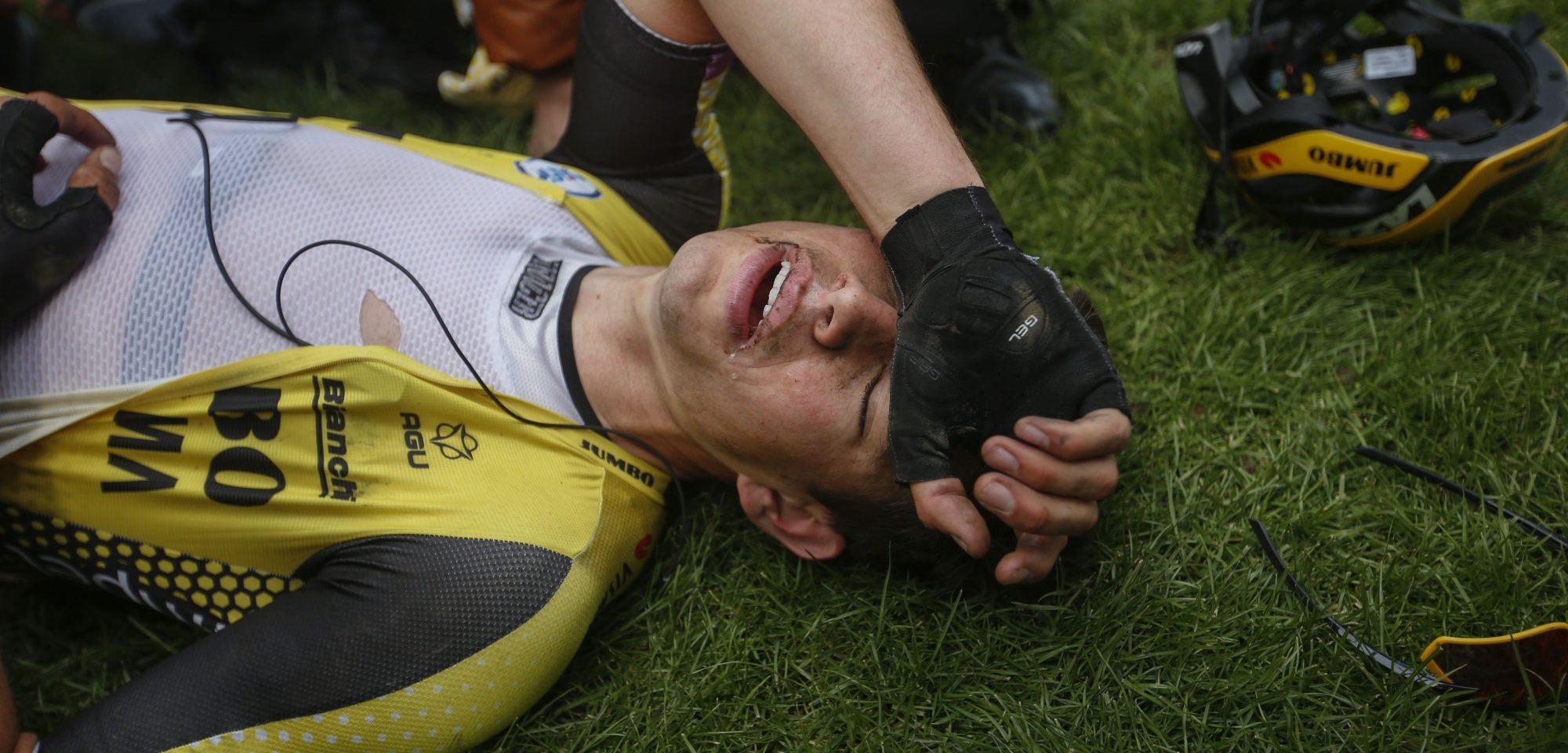 Pech voor Wout van Aert in het Bos van Wallers – foto: Cor Vos