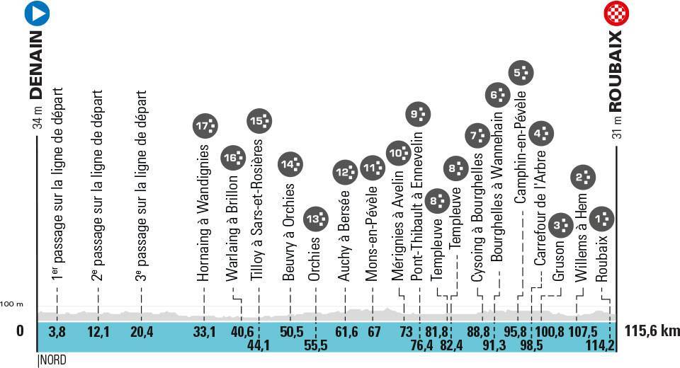 De start is zaterdag in Denain, vlakbij de grens met België. Daar rijden de dames drie openingsrondes in en door Denain van 8,3 kilometer. Daarin zit ook een neutralisatie. Uiteindelijk rijden ze na een kleine twintig kilometer aan de westkant uit Denain. Daarmee laten de vrouwen het Bos van Wallers rechts liggen. De befaamde strook die vaak de finale bij de mannen opent, ligt ten noordoosten van Denain. Het had de eerste strook kunnen zijn. Nu is dat Hornaing à Wandignies (3700 meter lang), meteen een slechte van vier sterren.