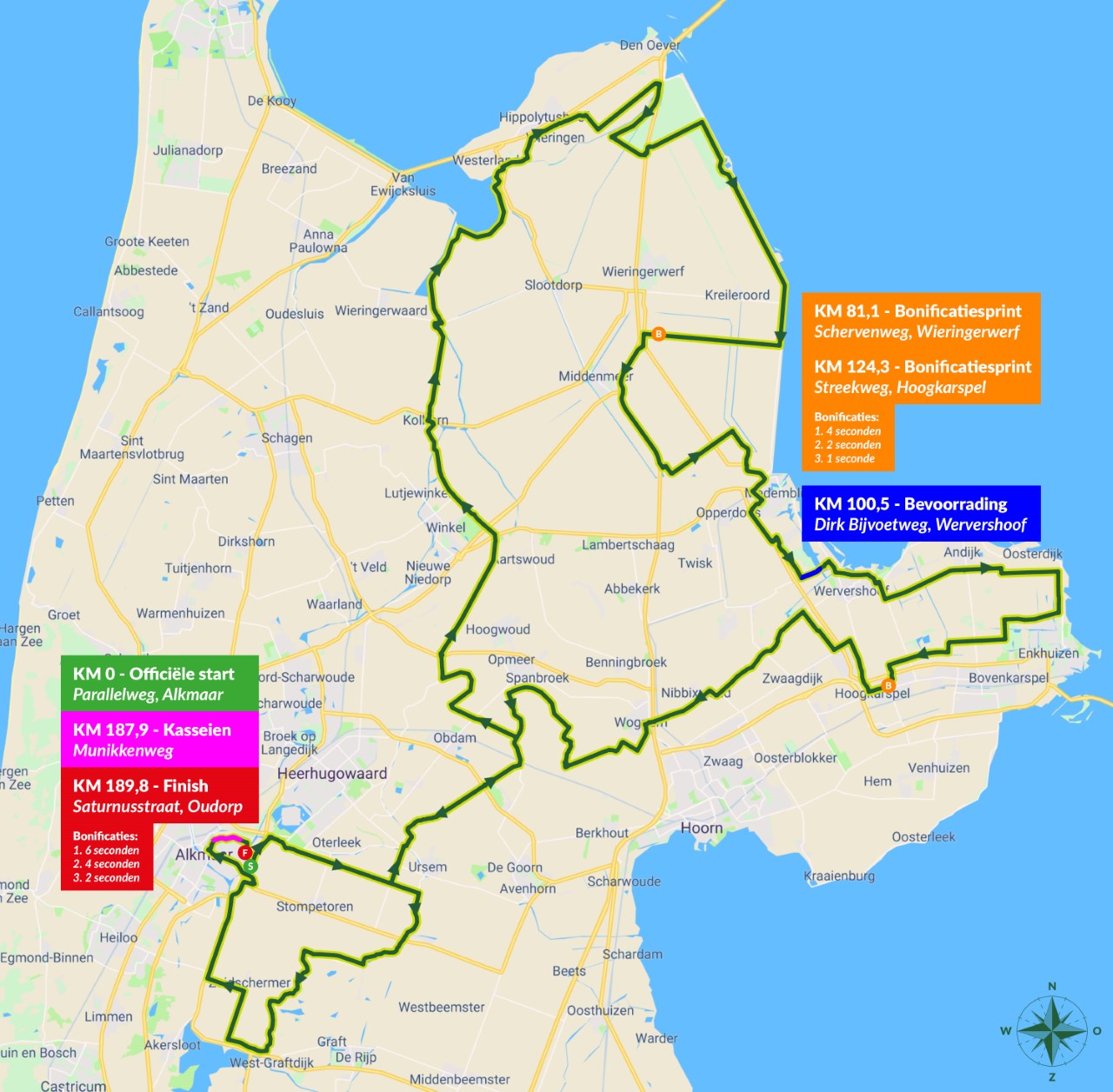 Hier moeten zij zich – nog meer – schrap zetten voor de wind. Hoeveel coureurs zullen er in de laatste veertig kilometer overblijven voor de winst? Dat zullen er vermoedelijk niet veel meer zijn. Via Ursem, West-Grafdijk en Zuidschermer zal er weer teruggekeerd worden in Alkmaar, waar alleen de kasseien van de Munnikenweg nog overwonnen moeten worden. Wie wint de Profronde van Noord-Holland en bombardeert zich – vermoedelijk – tot topfavoriet voor eindwinst in de Topcompetitie?