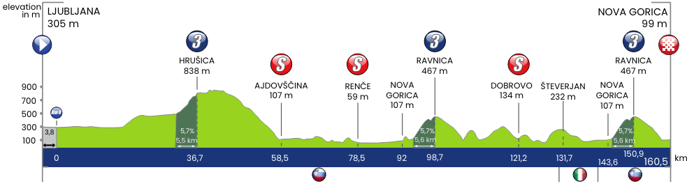 Vrijdag 14 juni, Etappe 3: Ljubljana- Nova Gorica (160,5 km)