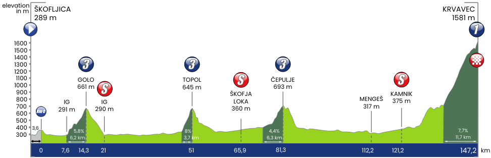 Zaterdag 15 juni, Etappe 4: Škofljica – Krvavec (147,2 km)