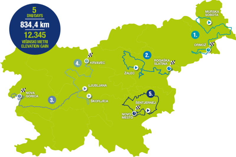 Ook dit jaar bestaat de Ronde van Slovenië weer uit vijf etappes. De organisatie heeft ook nu weer gekozen voor een divers parcours. Klimmers komen aan hun trekken in de 30ste jubileumeditie van de Ronde van Slovenië, al staat er ook dit jaar maar één serieuze bergrit op het programma. Verder zijn er de nodige sprintritten uitgetekend. We tellen toch drie (potentiële) kansen voor de rappe mannen in dit peloton.
