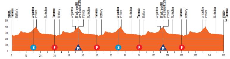 Er valt eigenlijk niet zoveel te vertellen over de rit, aangezien het peloton vijf lokale rondes (van dertig kilometer) afwerkt in en rond Tanunda. Er zijn nog wel enkele bergpunten te verdienen op de telkens terugkerende Breakneck Hill Road (gemiddeld 7,2%), maar de finish volgt na vijftien biljartvlakke kilometers. Aan de streep liggen overigens tien, zes en vier bonificatieseconden voor het oprapen.