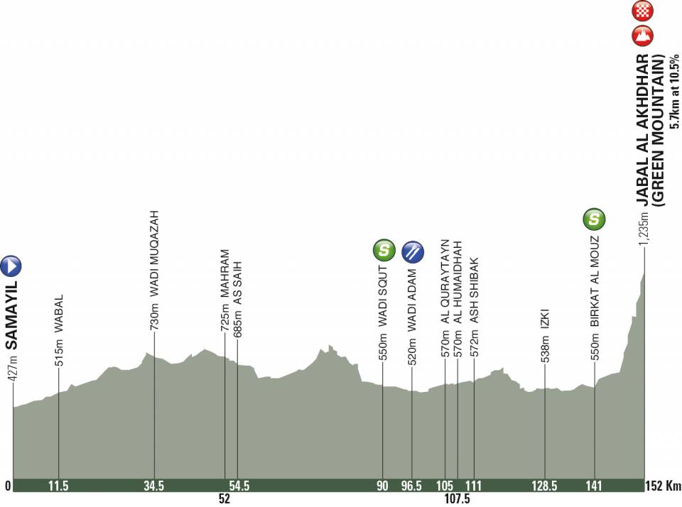 De beslissing in de Tour of Oman valt net als de voorbije edities in de koninginnenrit naar Al Jabal Al Akhdar. Die klim kennen we in Europa allemaal als Green Mountain, dat zijn naam dankt aan lijmsteen waaruit het gebergte bestaat. Het geldt als een van de hoogste punten in Oman. Dat is al vanuit startplaats Samayil te merken. Waar de renners zich tijdens de eerste vier ritten doorgaans op zeeniveau bevinden, speelt de vijfde etappe zich voornamelijk af op terrein dat zo’n vijfhonderd meter boven zeeniveau ligt. Voor de mannen die vroeg op het seizoen al over een goede vorm beschikken, is deze rit een geschenk.