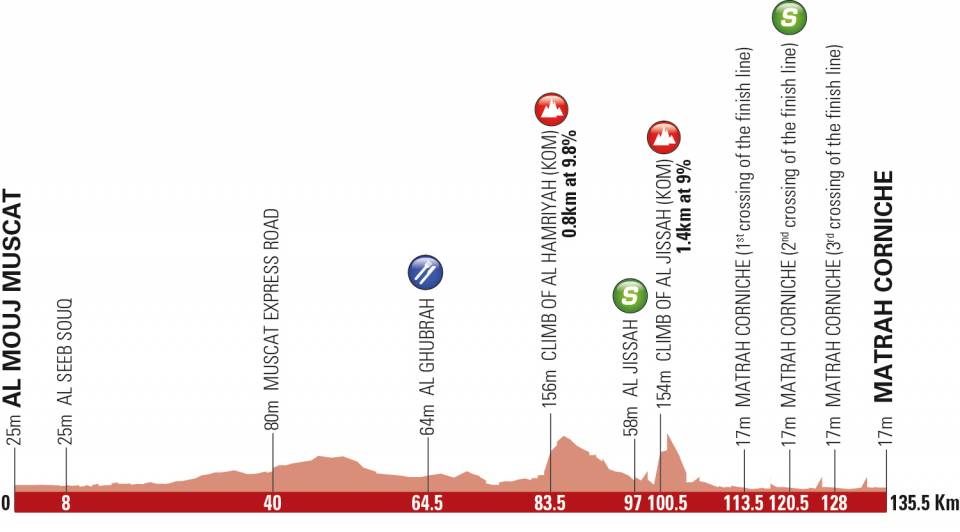 Net als de etappe naar Green Mountain is ook de laatste rit in de Tour of Oman inmiddels een klassieker, in hoeverre je daar in een tijdsbestek van negen jaar over mag spreken. Toch is dat het geval, want sinds de eerste jaargang is Matrah Corniche het decor van het Omaanse slotstuk. De Al Jissah passeert voor de derde keer de revue deze ronde en is op 35 kilometer van de aankomst de laatste gecategoriseerde klim van deze rittenkoers. Daarna zullen de ploegen met rappe mannen in hun midden in het laatste uur het pleit van de slotrit beslechten. De laatste drie jaar (!) won Alexander Kristoff deze etappe. Wie verslaat hem?