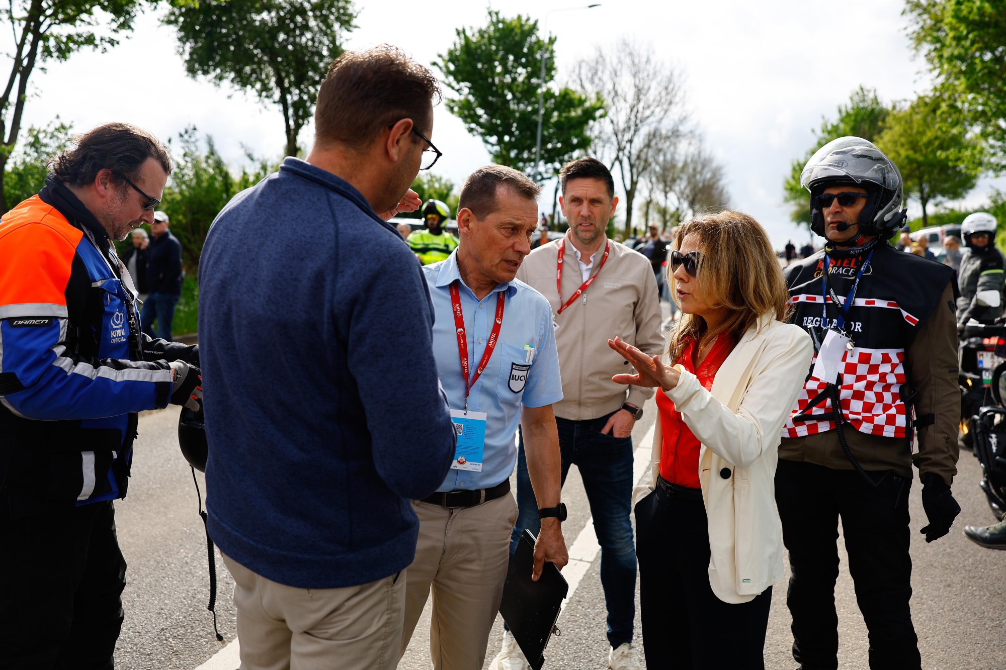 “Het vrouwenpeloton is na een lang oponthoud geneutraliseerd van de Bergseweg naar de voet van Sibbergrubbe gebracht. Boven op de Sibbergrubbe wordt de vrouwenwedstrijd zo snel mogelijk naar de finish geleid. Eenmaal aan de finish gaat gekeken worden hoeveel plaatselijke rondes met de Cauberg, Bemelerberg en Geulhemmerberg de vrouwen nog kunnen rijden.”