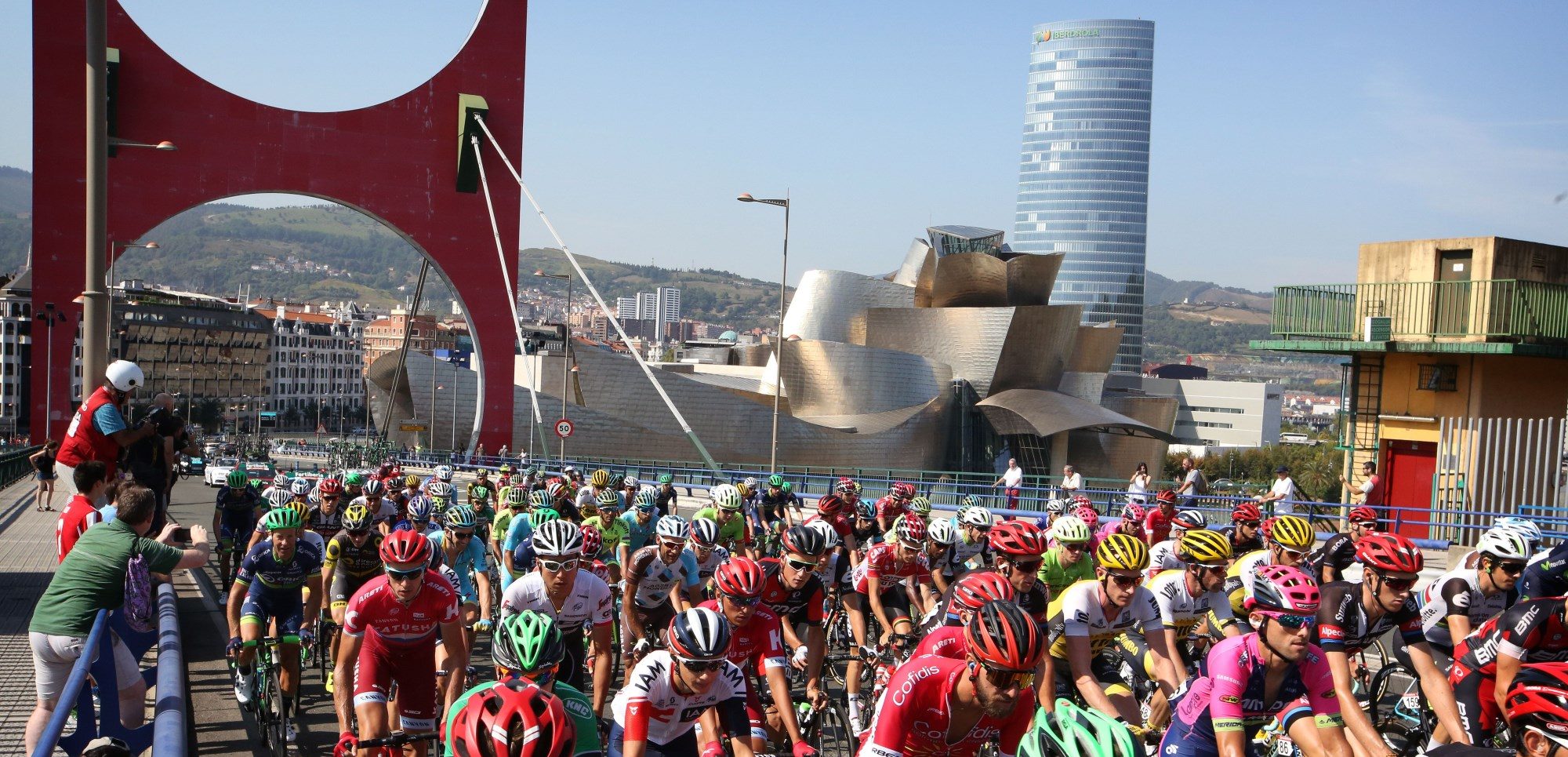 Het Guggenheim Museo tijdens de Vuelta-passage in 2016 – foto: Cor Vos