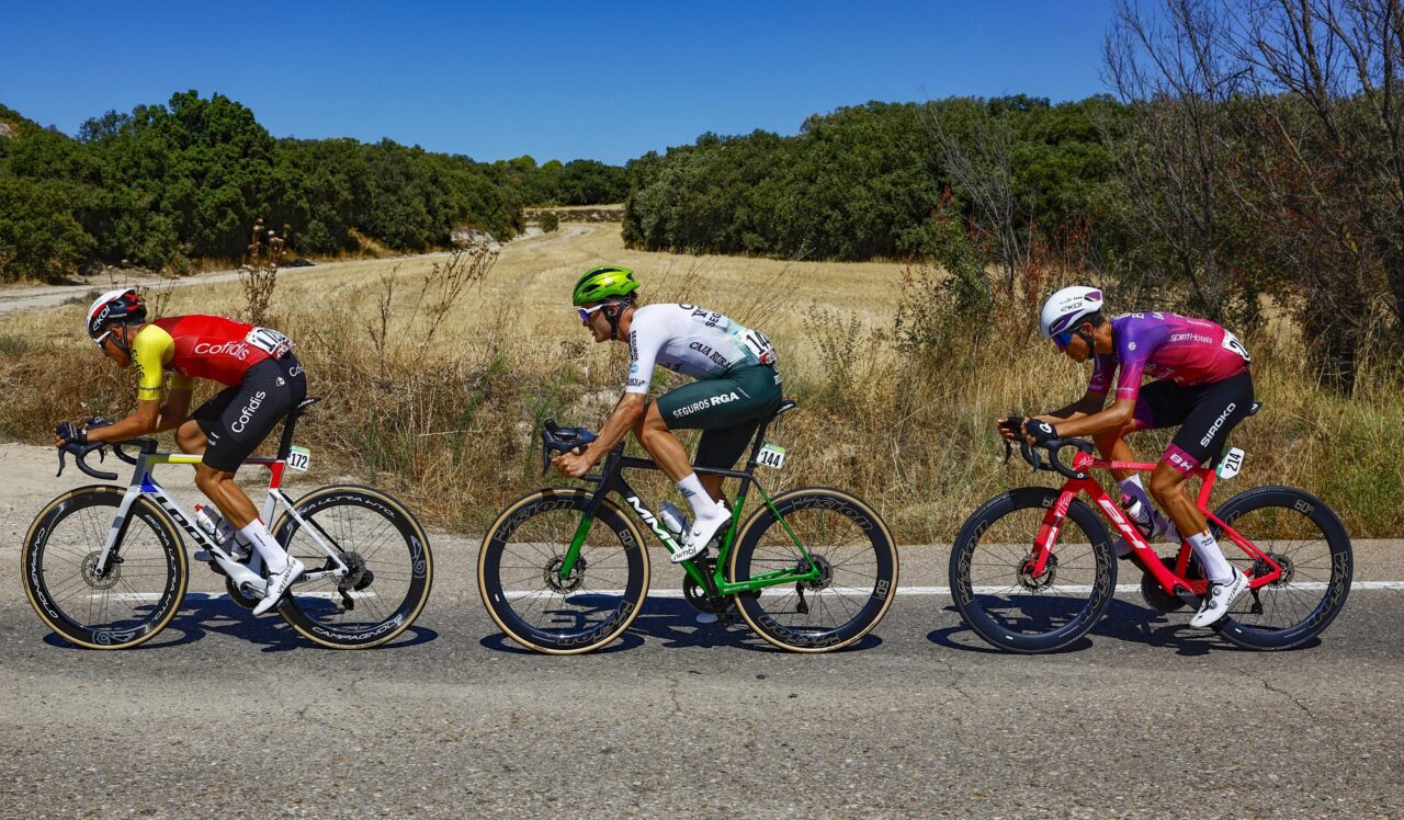 En dus zagen we ook een traditionele vroege vlucht zonder gevaarlijke namen. Joan Bou (Caja Rural – Seguros RGA), Sergio Samitier (Cofidis) en Jose Luis Faura Asensio (Burgos Burpellet BH) kozen vanuit het vertrek het hazenpad en vergaarden een voorsprong van vier minuten. In het peloton controleerde aanvankelijk alleen Alpecin-Deceuninck, later zette ook Lidl-Trek een mannetje bij.