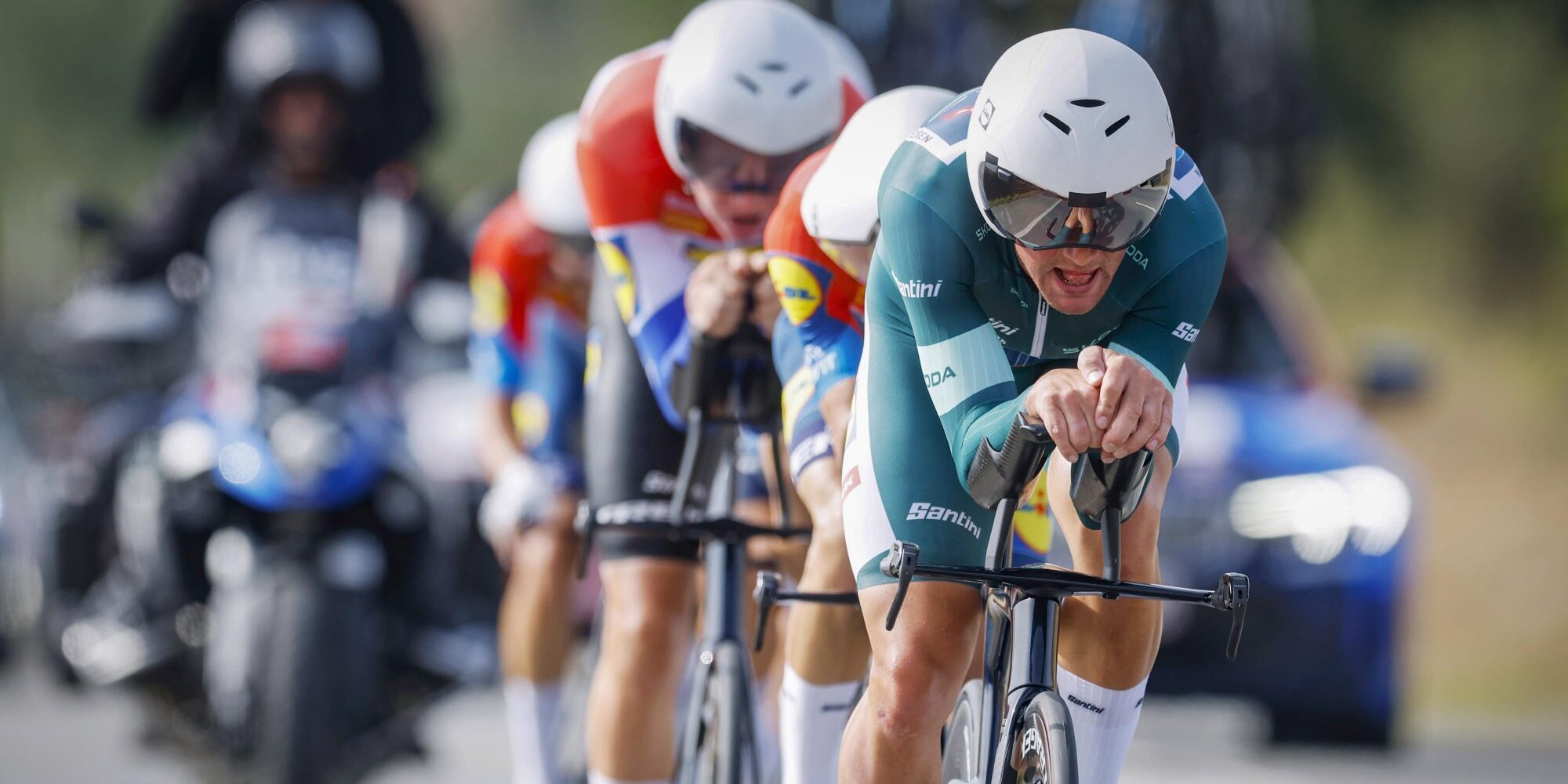 De Belgische Lotto-ploeg mocht als eerste van start gaan, en deed het meteen niet zo slecht. De renners werkten hun ploegentijdrit af aan een gemiddelde van 56 kilometer per uur, waardoor ze – logischerwijs – als eerste naar de hotseat mochten. De vijf volgende ploegen zouden hun tanden stukbijten op die eerste richttijd, maar toen Lidl-Trek aan de start verscheen, kregen ze bij Lotto toch een bang hartje.